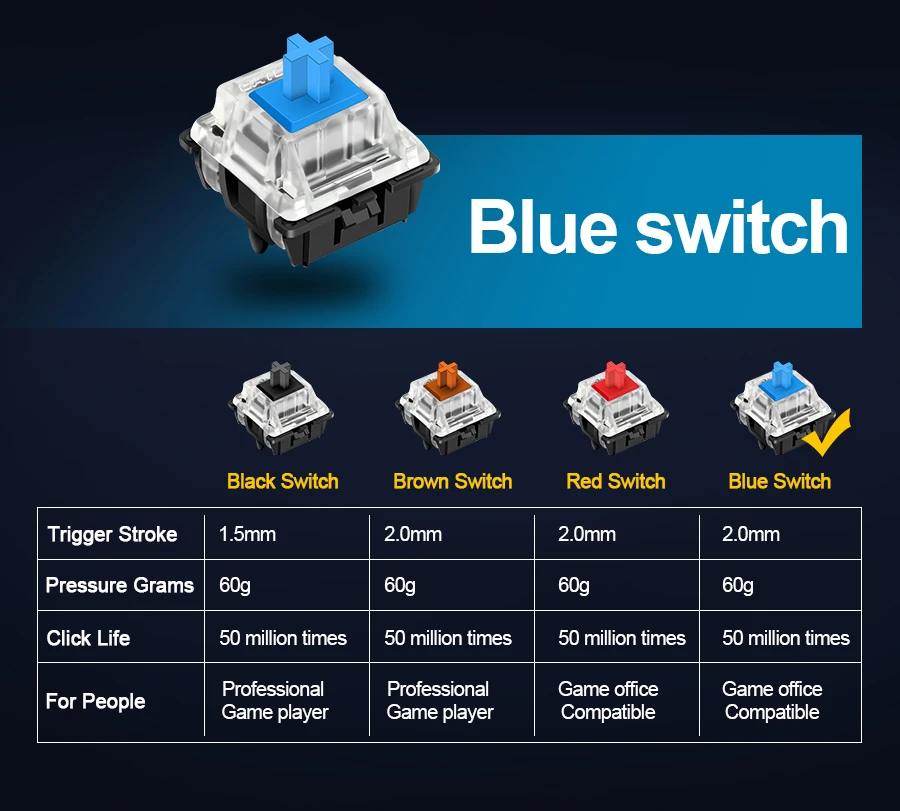 Синий переключатель с хорошим чувством прохода, является самым классическим валом,