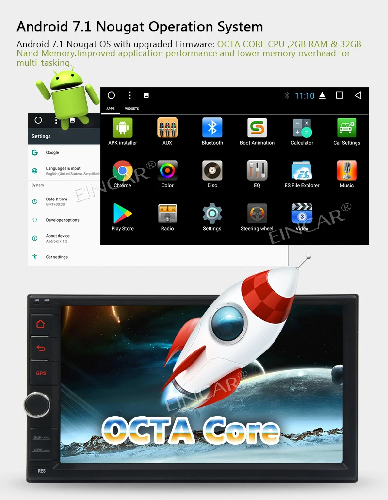 Gps: Бесплатная автономная карта предзагружена, поддержка Google maps онлайн навигация, поддержка других Android навигационных приложений.