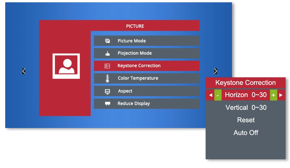 Поддержка ± 45 ° Коррекция трапецеидальных искажений