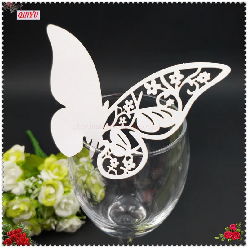Крылья бабочки полые винтажные дизайнерские чашки карты Лазерная резка Имя Марка помещенные карты 100 шт Вечерние принадлежности 6ZSH859-100