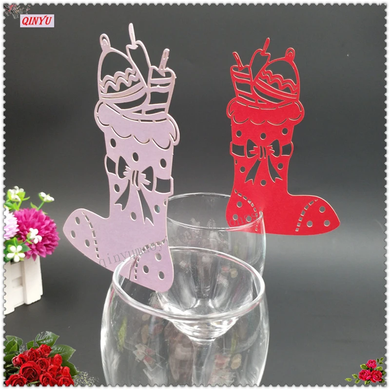 50 шт./лот праздники и события домой вечерние украшения Рождественские Носки лазерная резка бумаги чашки карты источники 6ZSH851-50