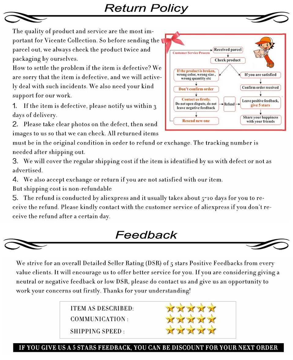 1. Товар будет отправлен с номером отслеживания в течение 2 рабочих дней после завершения или очистки платежа. И мы будем следовать только вашему адресу aliexpress. Пожалуйста, убедитесь, что указанный вами адрес Aliexpress верен. (В то же время, Мы также поддерживаем EMS,DHL и FedEx Express. Если вы хотите заказать большое количество товаров и воспользоваться лучшим Экспресс-сервисом, пожалуйста, свяжитесь с нами перед оплатой.)
