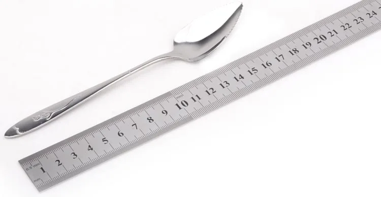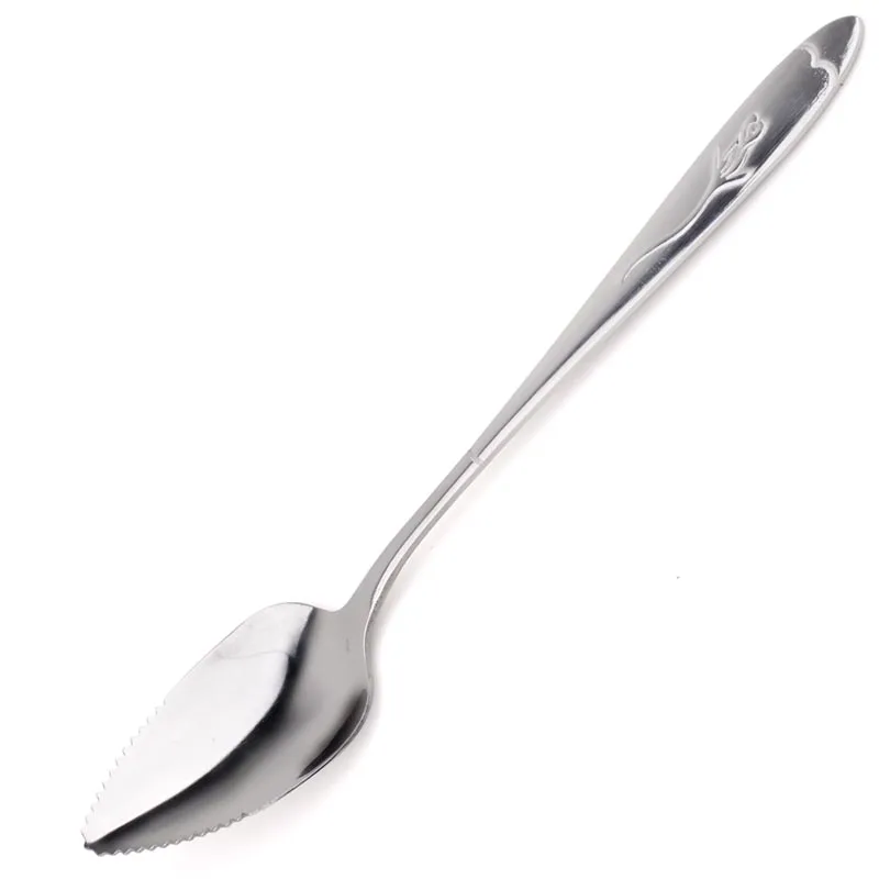 Особенности продукта: -100% новый и высокое качество. -Высококачественная нержавеющая сталь с зеркальной полировкой, легко моется. -Не ржавеет, прочный и практичный. -Новый креативный дизайн пилы-зубная ложка, легко царапает фруктовое пюре для ребенка. -Разработан специально для очистки грейпфрута, груши, ореха и т. Д.; Хорошие кухонные инструменты для фруктов и овощей.