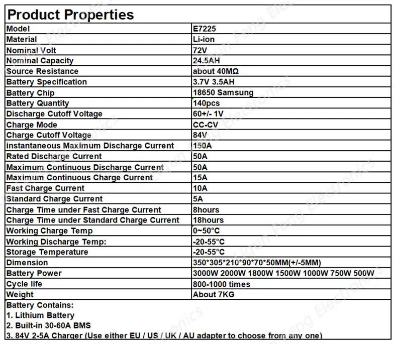 Аккумулятор Ebike 72 в, литиевый аккумулятор для скутера 72 в 25 А/ч 24 а/ч, батарея для электрического велосипеда с мотором Samsung Cell for72в 2000 Вт 3000 Вт.
