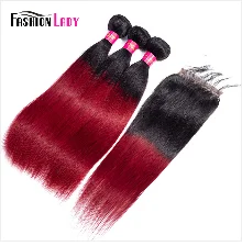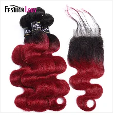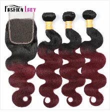 Fashion Lady T1b/99j Ombre Bundles With Closure Brazilian Human Hair Body Wave Bundles With Closure Non-remy