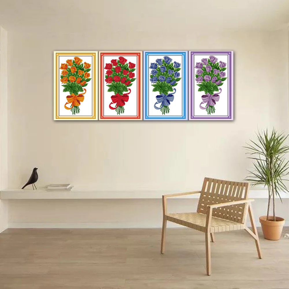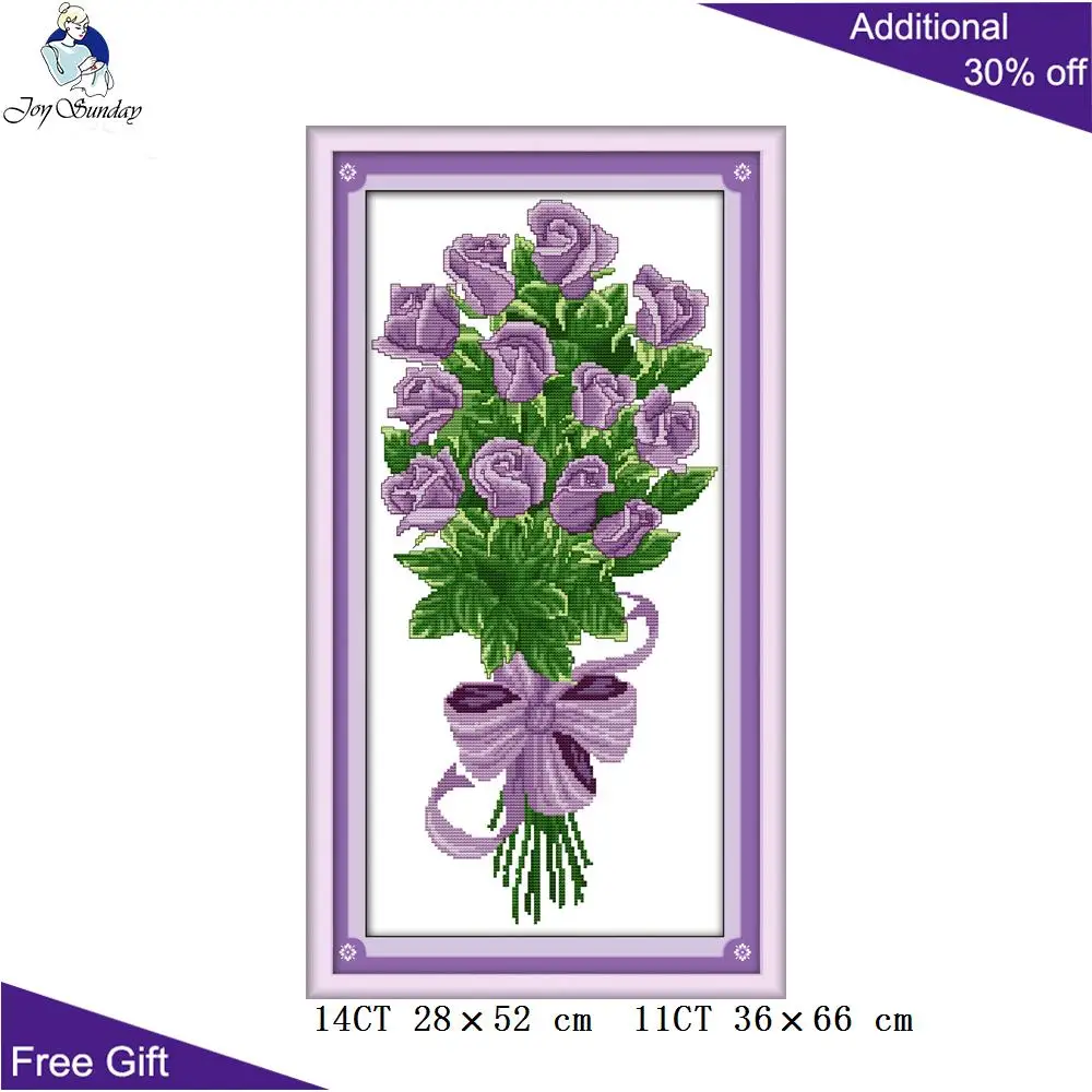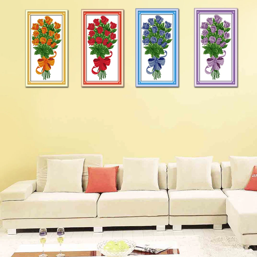 Joy Sunday Flower домашний декор H018(1)(2)(3)(4) 14CT 11CT Счетный штампованный подарок оранжевый красный синий фиолетовый цветы крестиком наборы