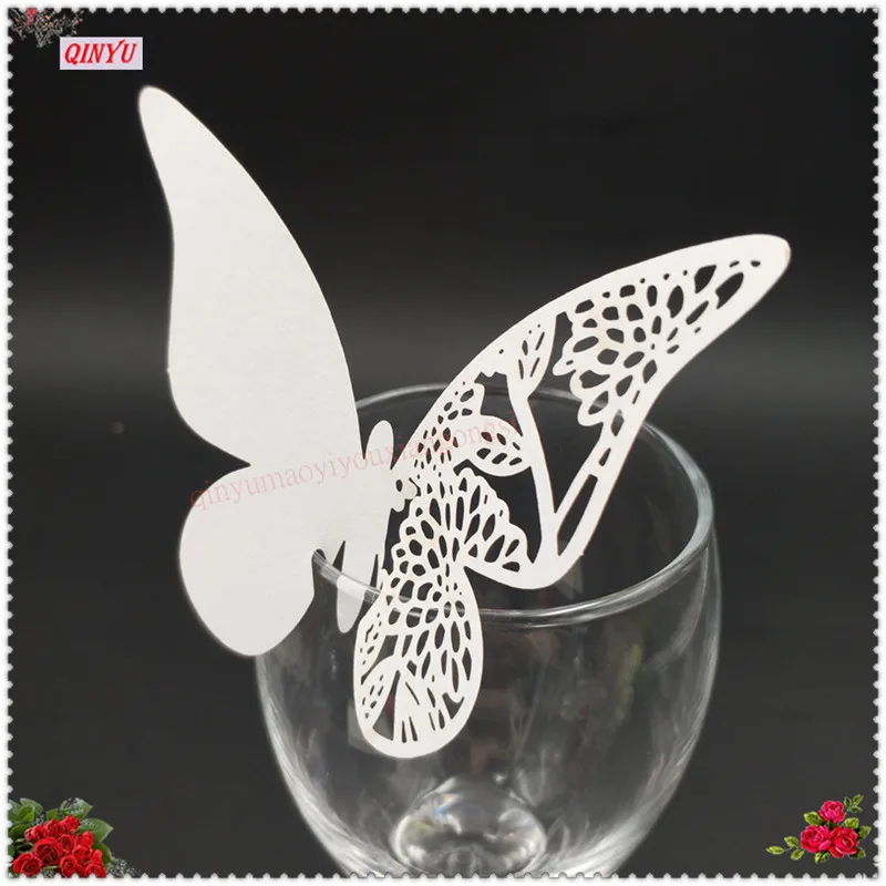 50 шт., стеклянные чашки, украшения, бумага, в форме бабочки, лазерная резка, имя, знак, карты, фестиваль и событие, декор 7ZSH860-50