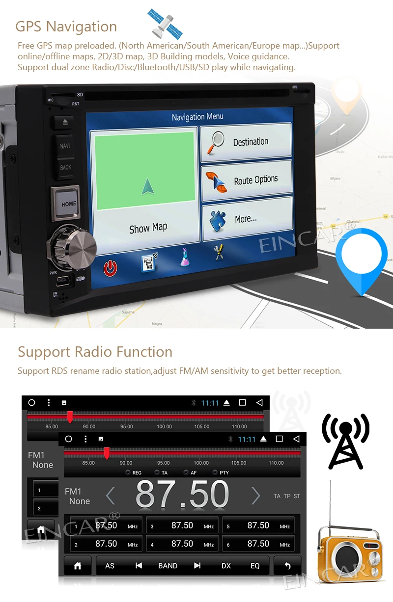Голосовое руководство, 3D карта, spport радио/Bluetooth/USB/SD воспроизведение во время навигации