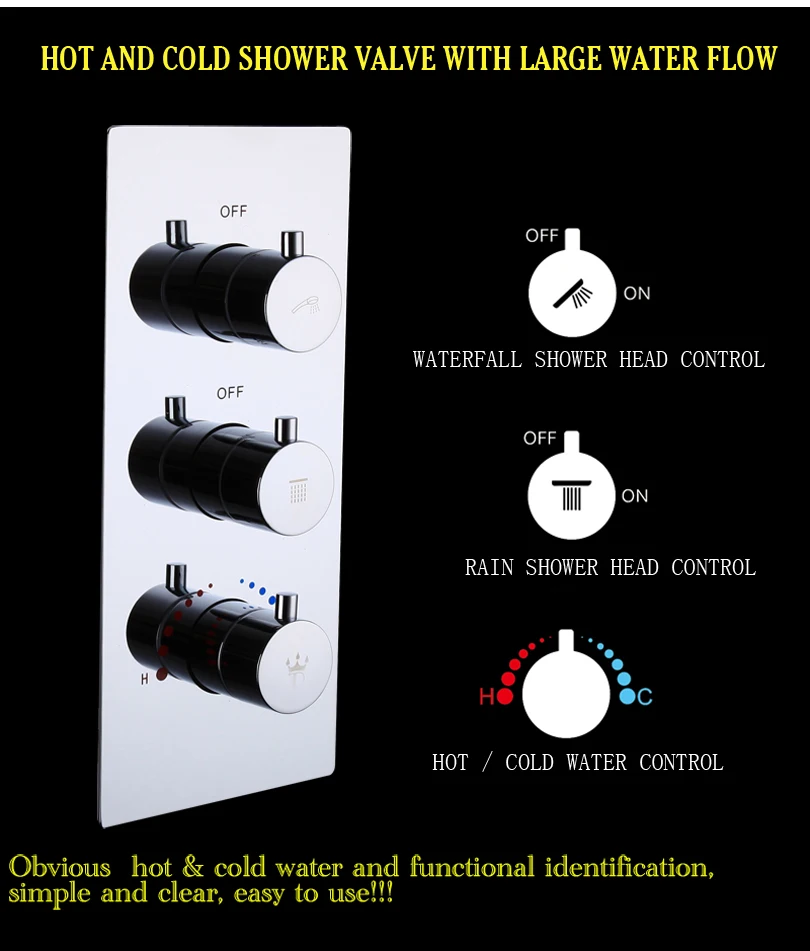 Душевая головка для ванной комнаты с дождем и водопадом (Хром или матовый никель)+ Большой водяной клапан для горячей и холодной смешивания