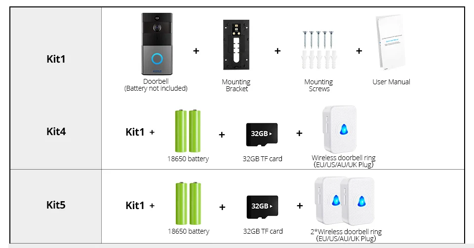 Низкое энергопотребление и сверхдлительное время работы в режиме ожидания-этот wifi дверной звонок принимает 2 батареи 18650 и использует ультра низкую мощность