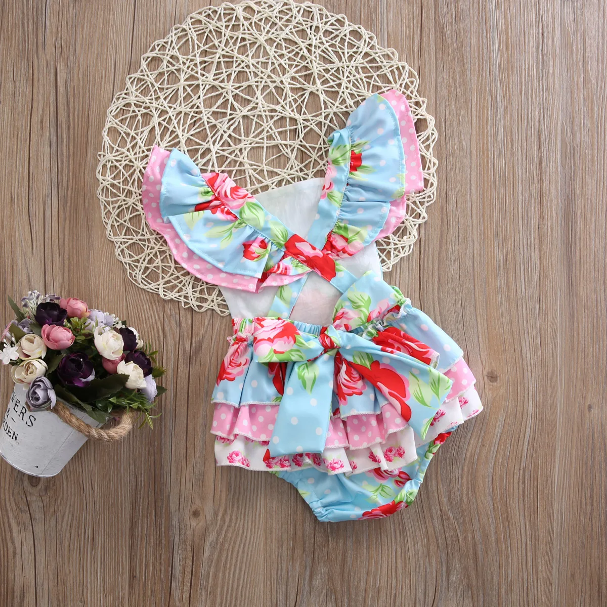 Новый Прелестный Детский комбинезон с цветочным рисунком для маленьких девочек