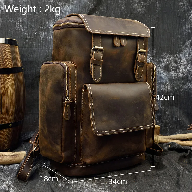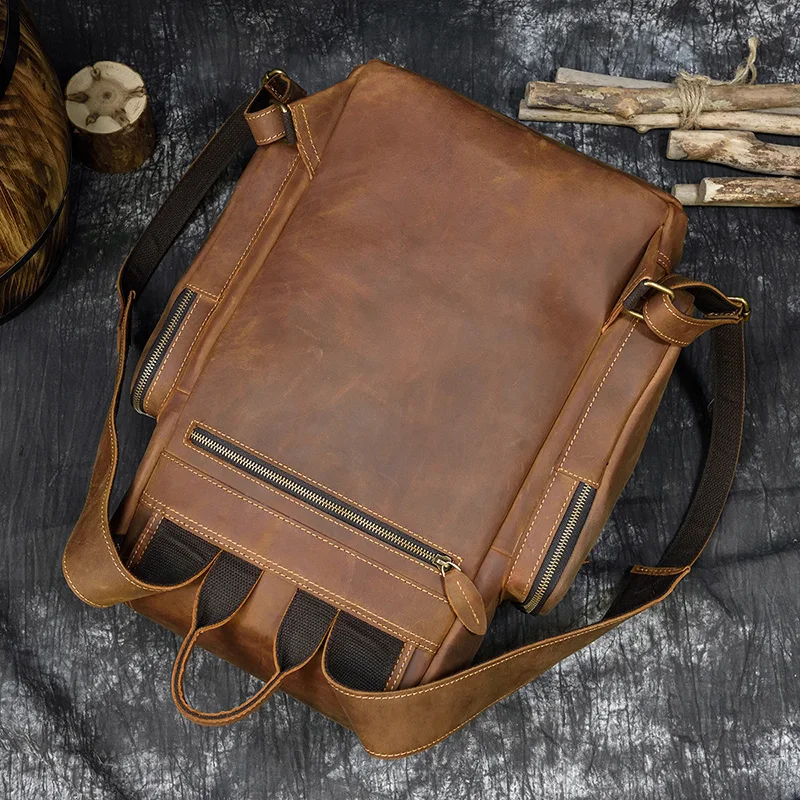 Материал: 100% натуральная кожа Особенность: ВИНТАЖНАЯ кожа Crazy Horse Емкость: может вмещать 14 ноутбуков, А4 книг, SLR камеры, iPad, складной зонтик, бутылки для воды и т. Д.