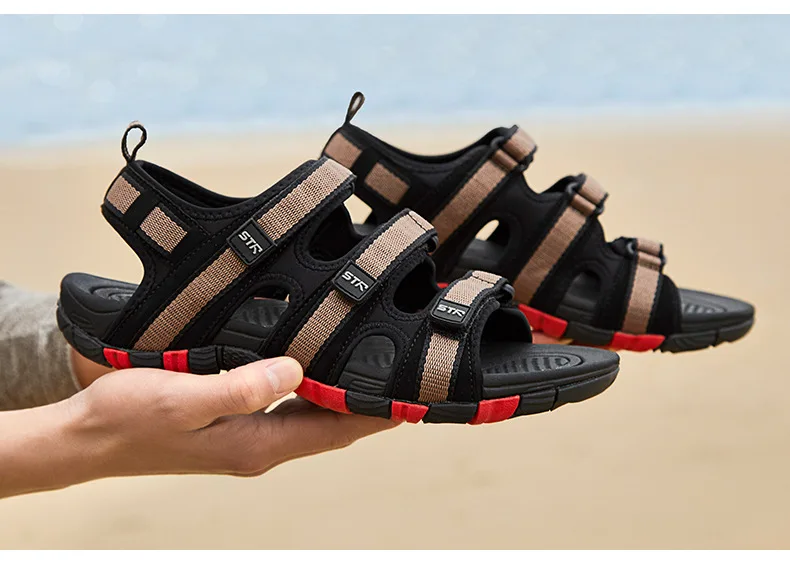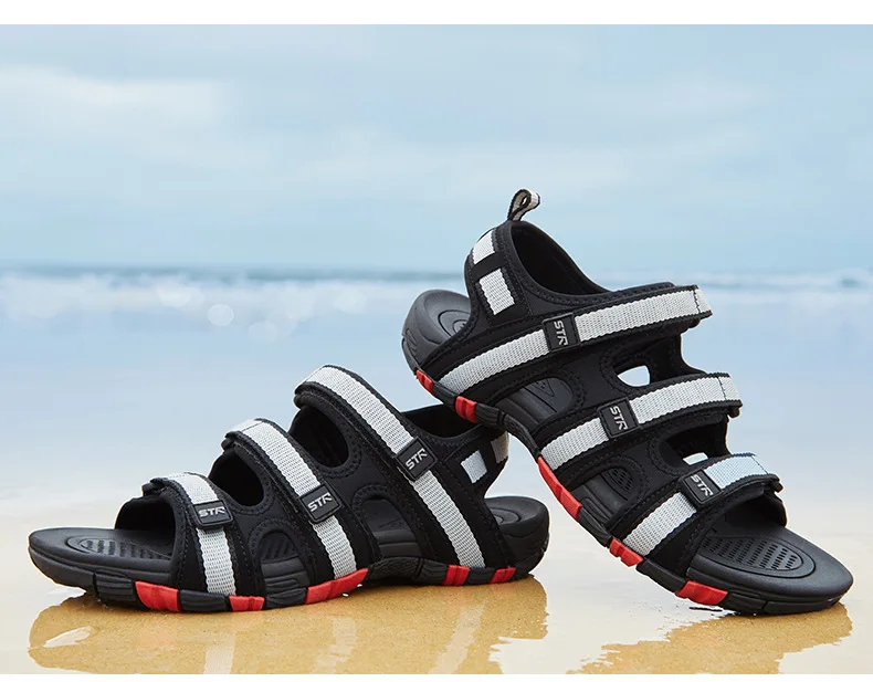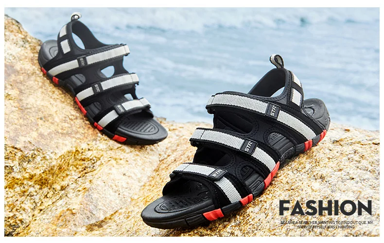 Летние мужские сандалии; Мужская Летняя обувь на липучке; Модель 2018 года; Модная Водонепроницаемая Повседневная пляжная обувь; Цвет Черный; Размеры 39-44.
