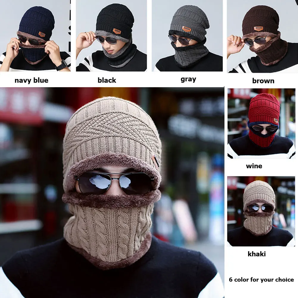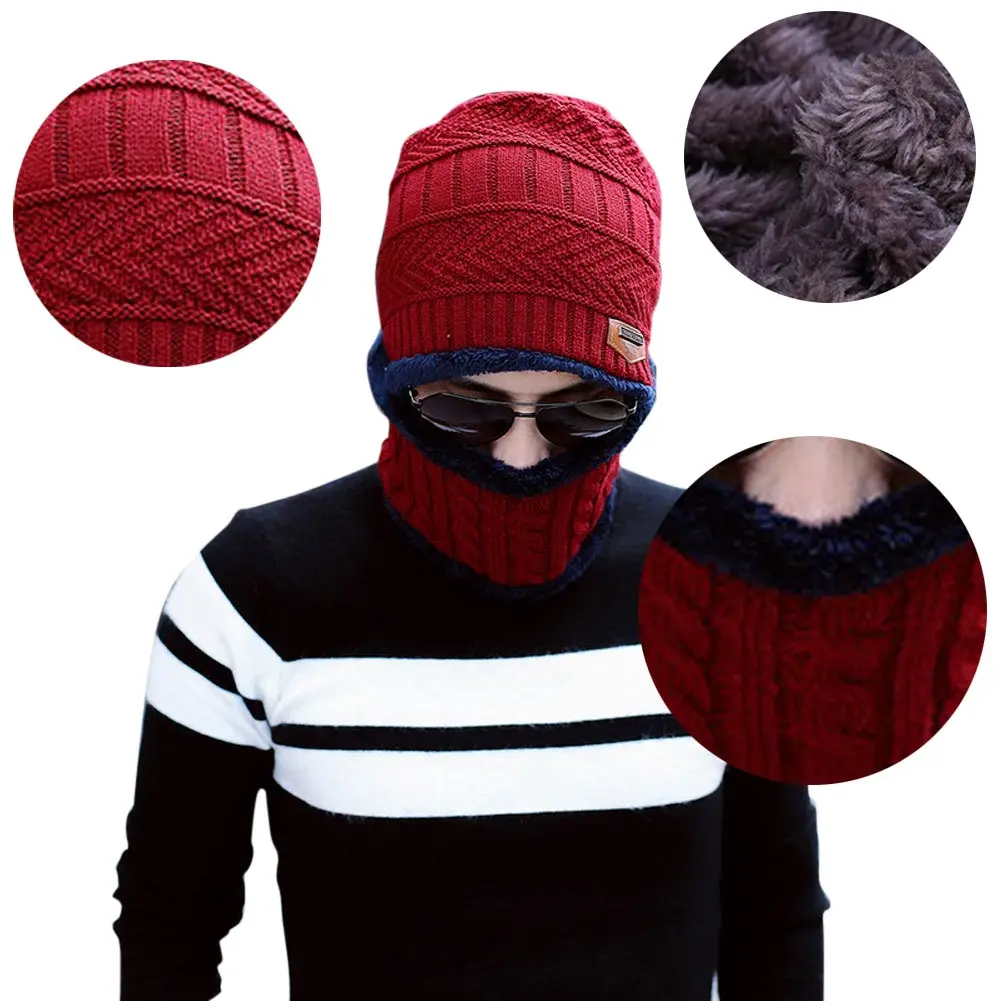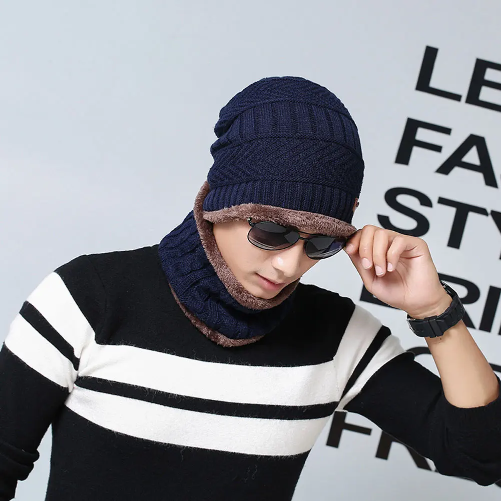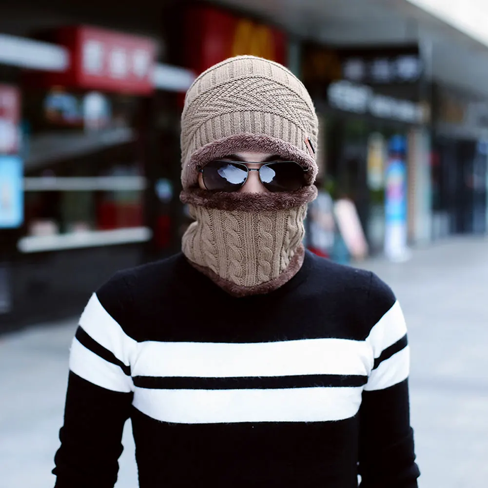 Унисекс зимняя Лыжная ветрозащитная Флисовая теплая вязаная шапка с утеплителем для шеи