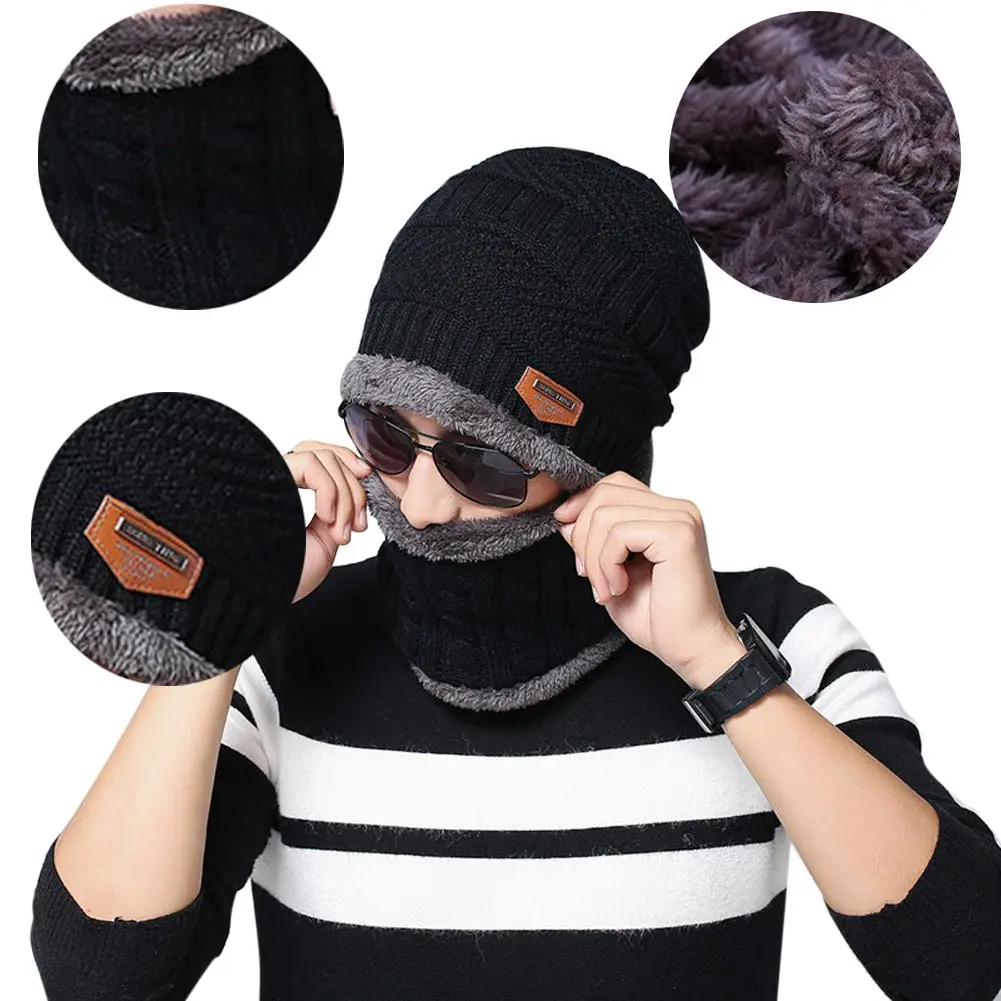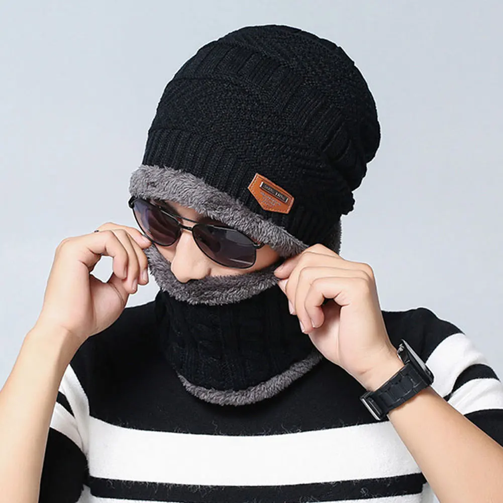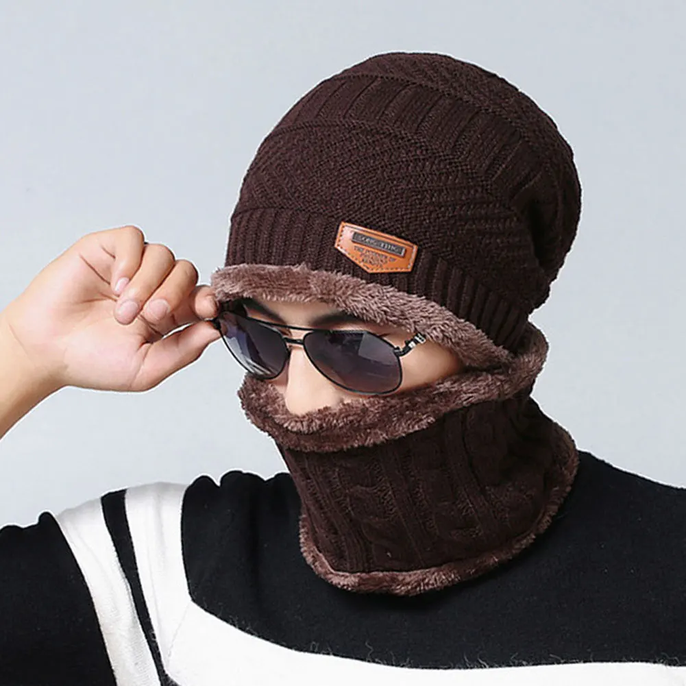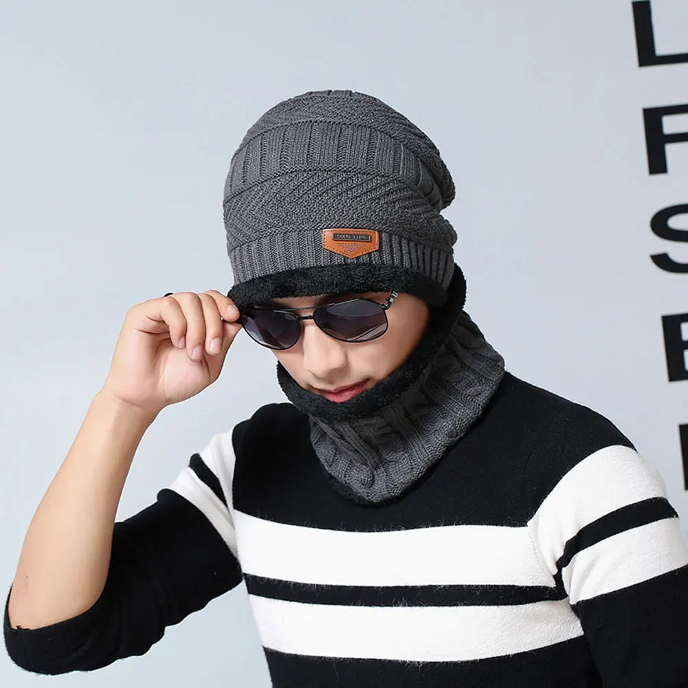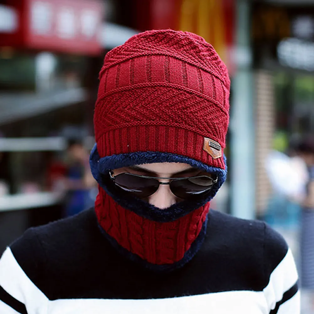 Унисекс зимняя Лыжная ветрозащитная Флисовая теплая вязаная шапка с утеплителем для шеи