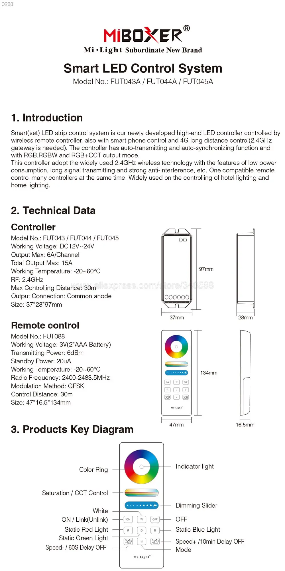 1 x FUT044A RGBW светодиодный контроллер с пультом дистанционного управления ********** Пульт ДУ поставляется без аккумулятора из-за таможенных ограничений! ************