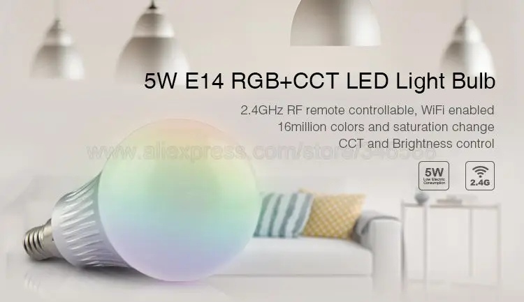 Лампа FUT013 RGBCCTТребуется дополнительный пульт Milight RGBCCT, чтобы получить его работу, также можно достичь управления Wi-Fi APP и третьего вечерние голосового управления при использовании с WL-Box1.