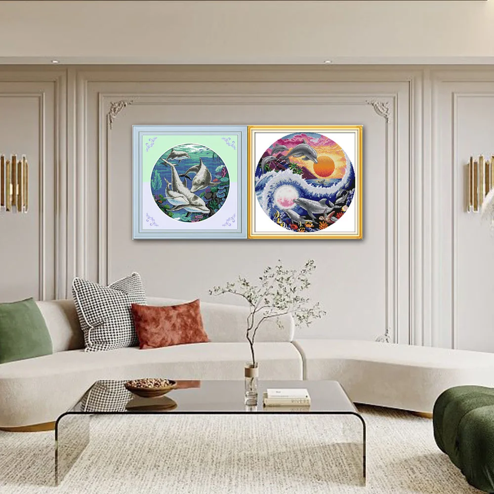 Джой воскресенье дельфины море рукоделие D138 D582 домашний декор Классический Дельфин Солнце Луна и дельфины животные наборы для вышивки крестиком