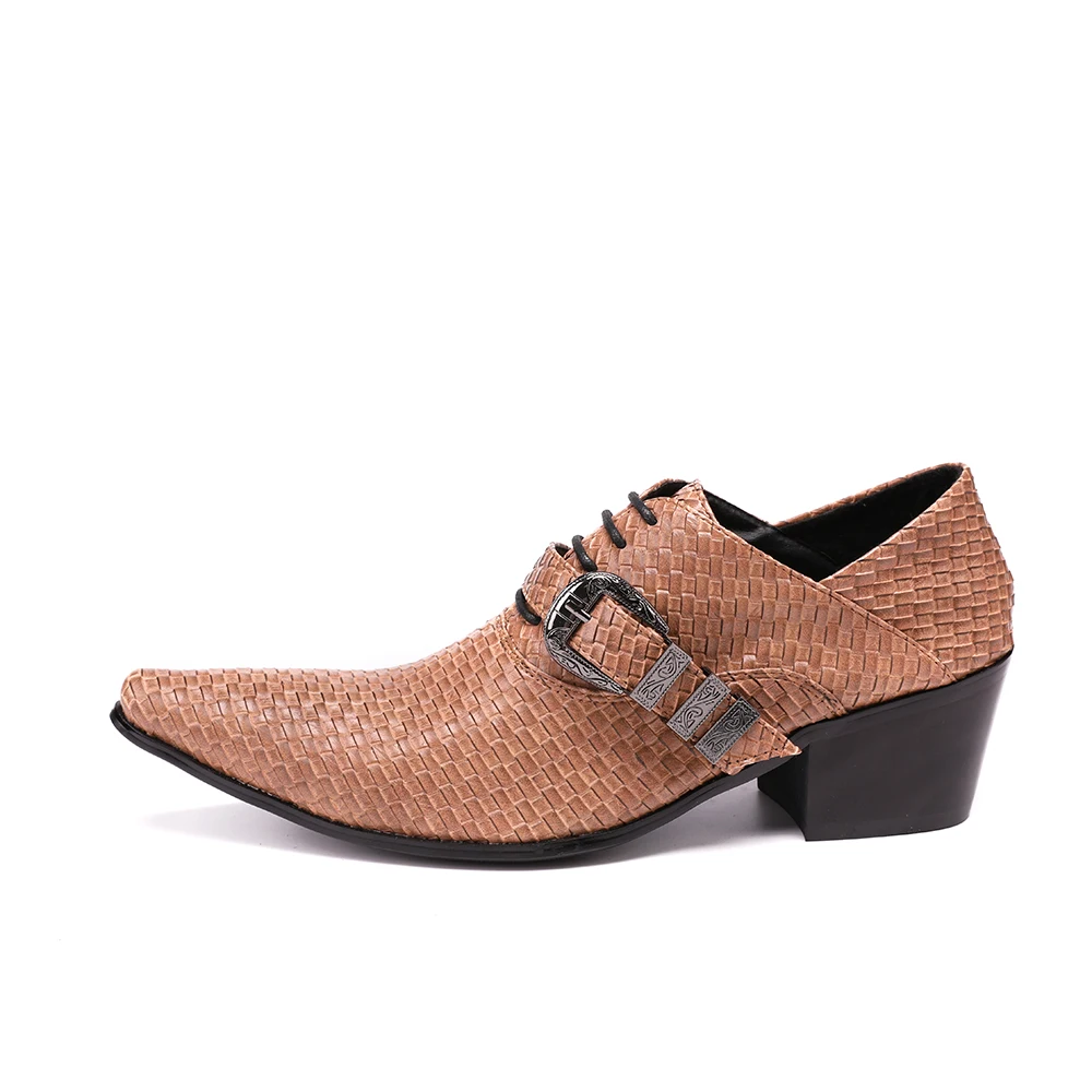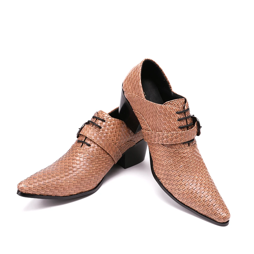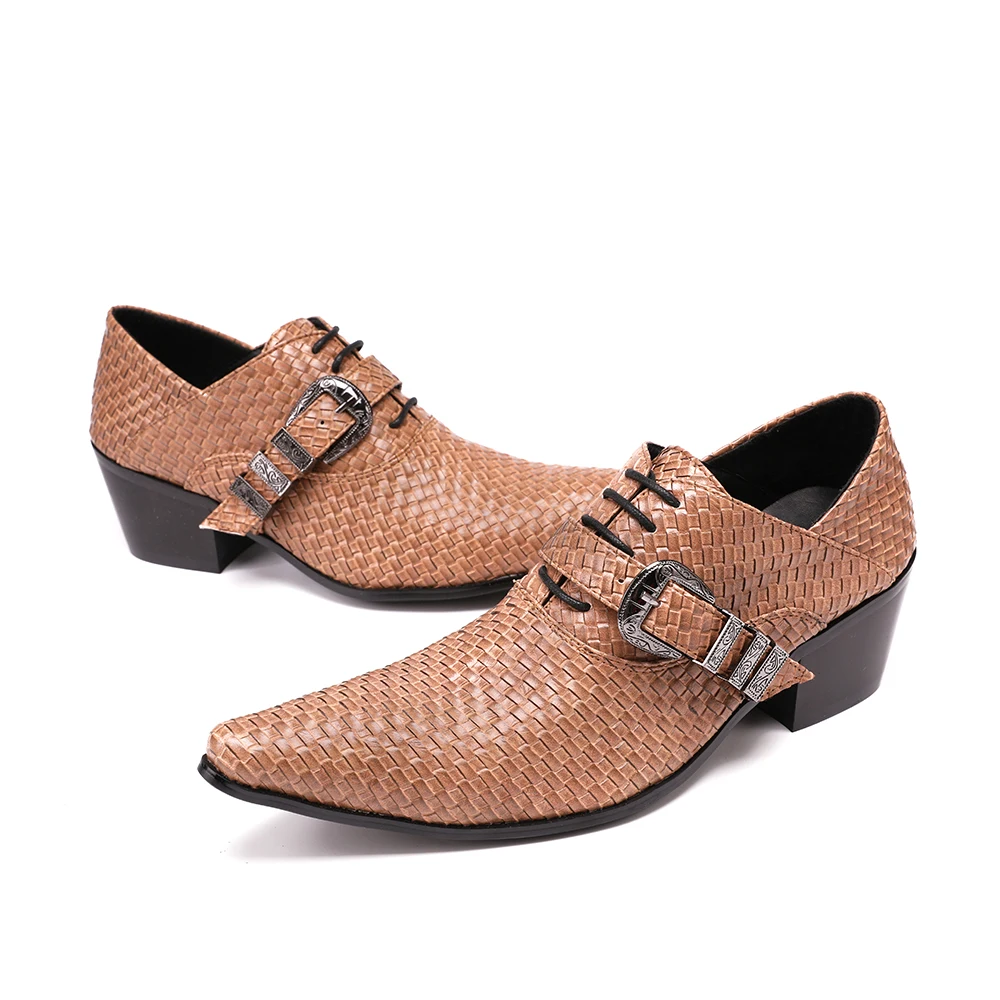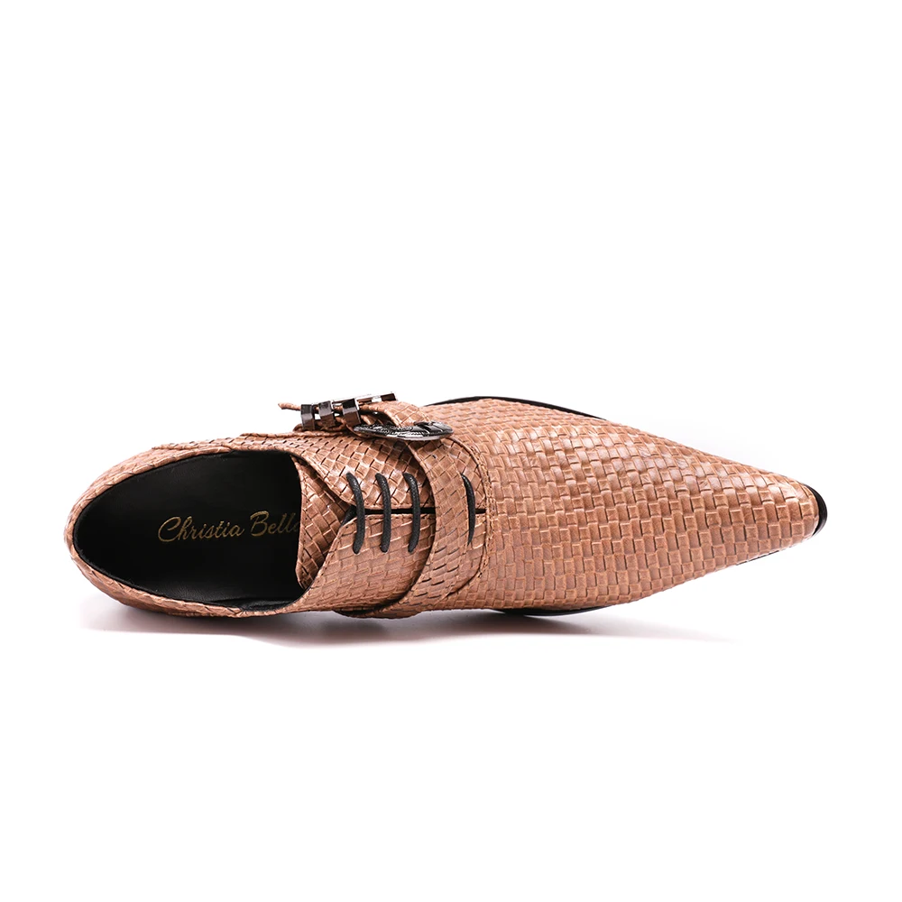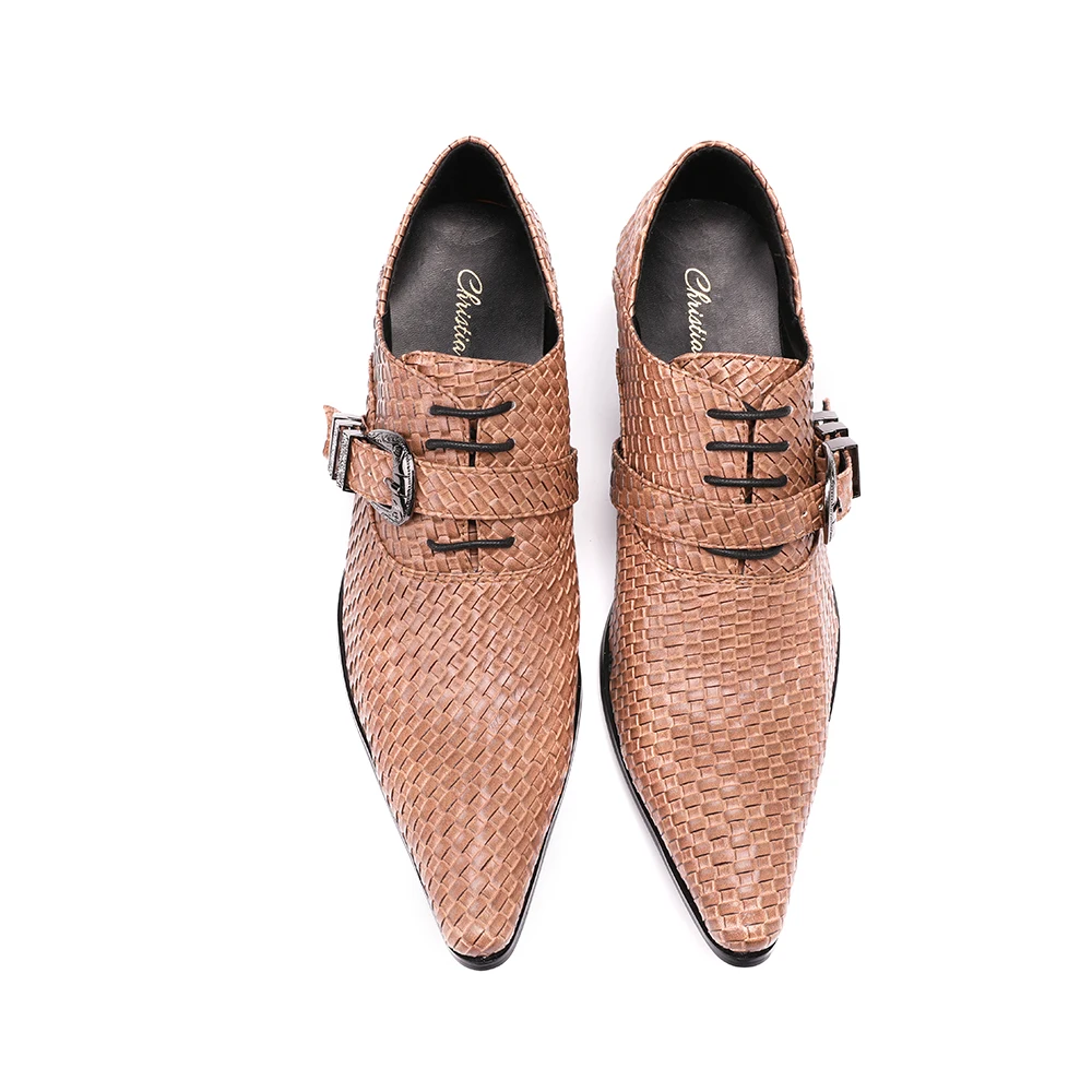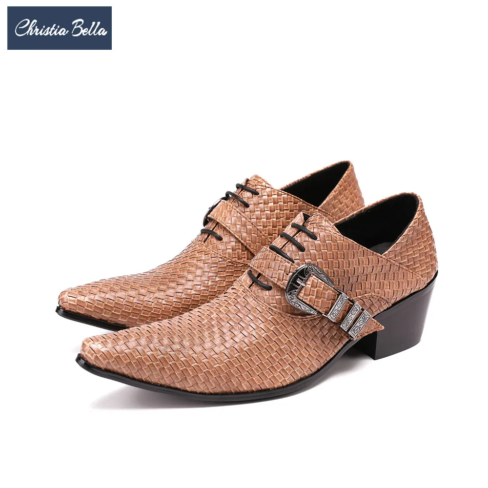 Christia Bella/Новинка; Мужские туфли из натуральной кожи; Вечерние туфли-оксфорды на высоком каблуке; Модельные туфли с острым носком и пряжкой; Большие размеры; Броги