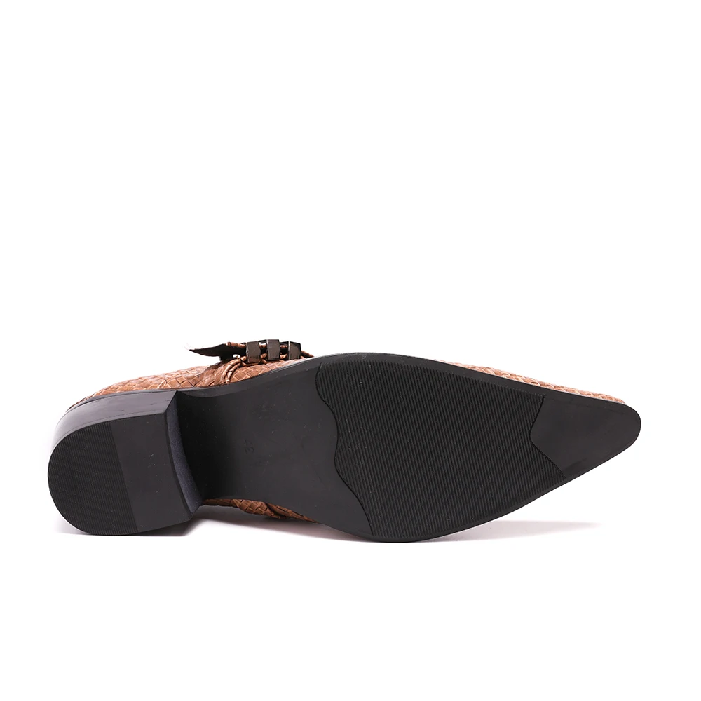 2. Материал: натуральная кожа, декорированный принт, заклепки, стразы, металлический носок и т. Д.