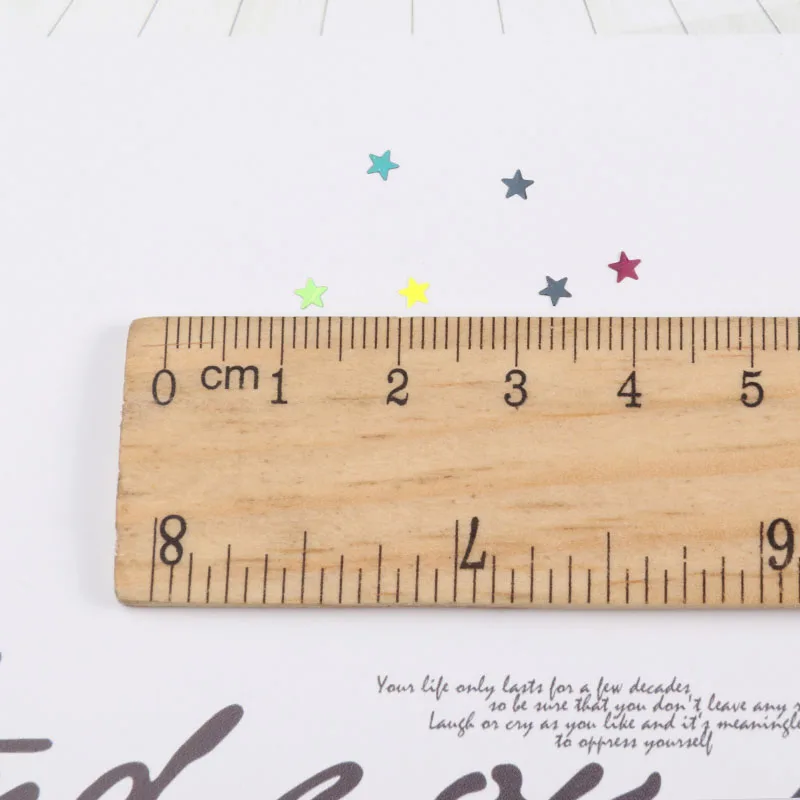 Материал: домашних животных. Толщина: Untrathin Форма: круглые плоские звезды Размер продукта: приблизительно 3 мм, (1 дюйм = 25,4 мм или 1 мм = 0,0393 дюйма) Цвет: 19 видов цветов, как на фото. Может быть небольшая разница в цвете, так как различные настройки контрастности светодиодного монитора. Упаковка: Вы получите 10 г блесток за лот по прайс-листу.