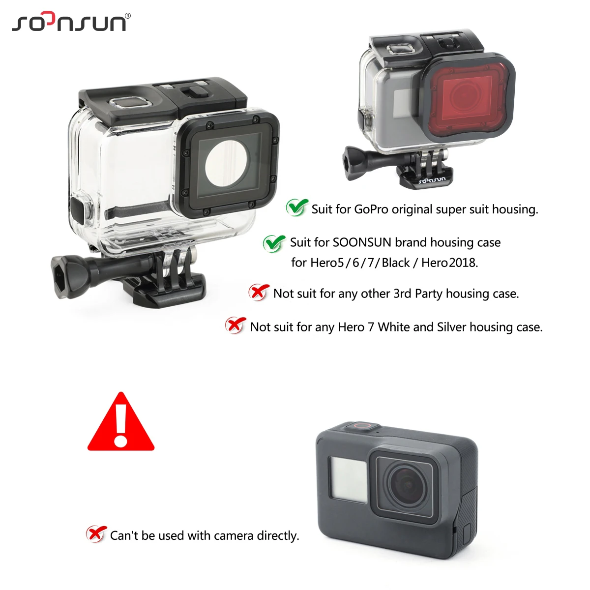 1) изготовлен из высококачественного пластика и акрила 2) Комплект 3 в 1, включает три фильтра для различной глубины и различных условий погружения 3) Легкая защелкивающаяся конструкция, удобно снимать фильтры из корпуса 4) Поставляется с страховочным тросом для подключения фильтра к корпусу 5) Подходит для GoPro HERO5 / HERO6 / HERO7 черная камера оригинальный супер костюм корпус