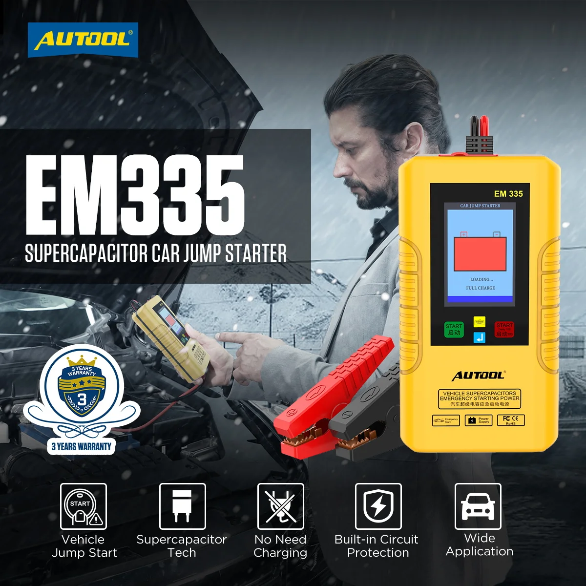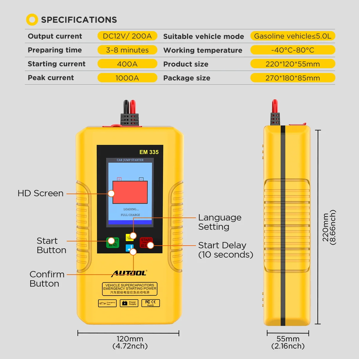 Autool EM335 батареек автомобиль скачок стартер с ультраконденсатор неограниченное количество Применение с аварийном автомобилем 12В Мощность банк мгновенной зарядки