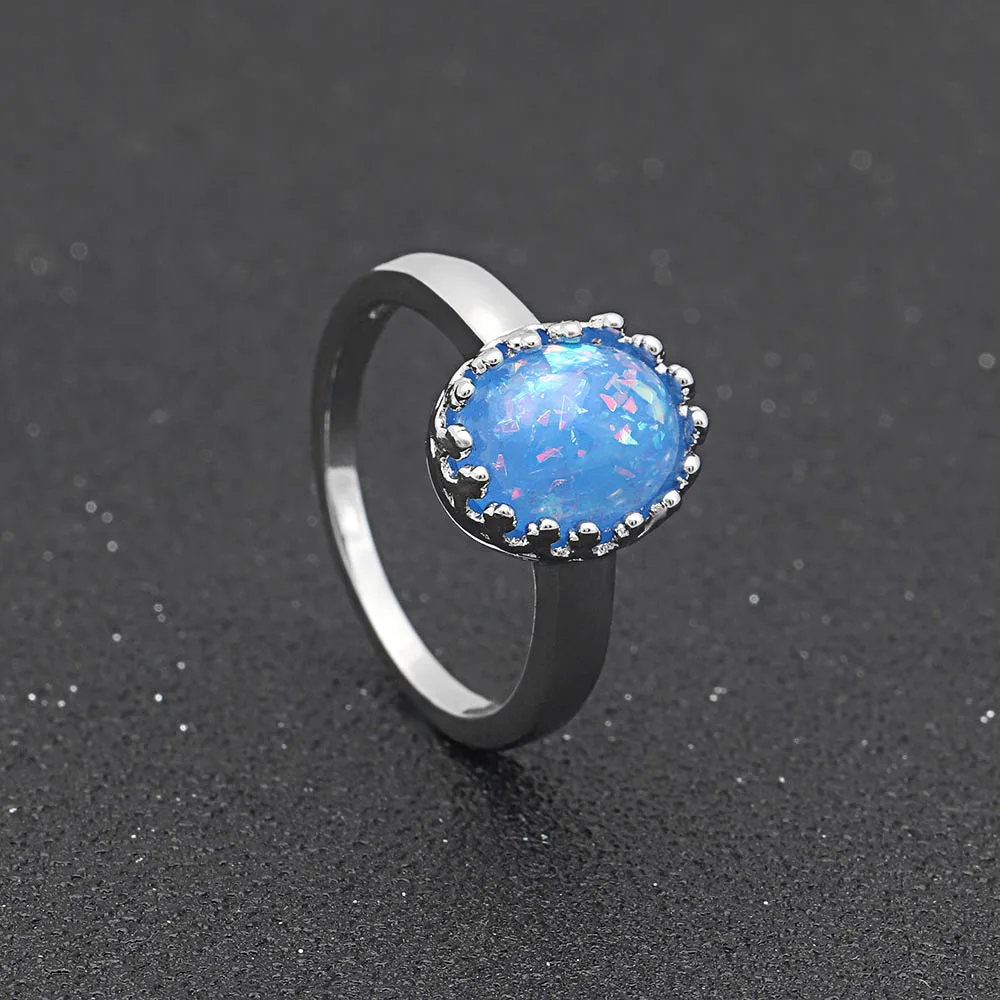 Фиолетовое зеленое и голубое огненное Опаловое овальное кольцо для яиц, ювелирное изделие, белое золото, заполненное простой любовной короной, амулеты на заказ, Женское кольцо на палец, подарок