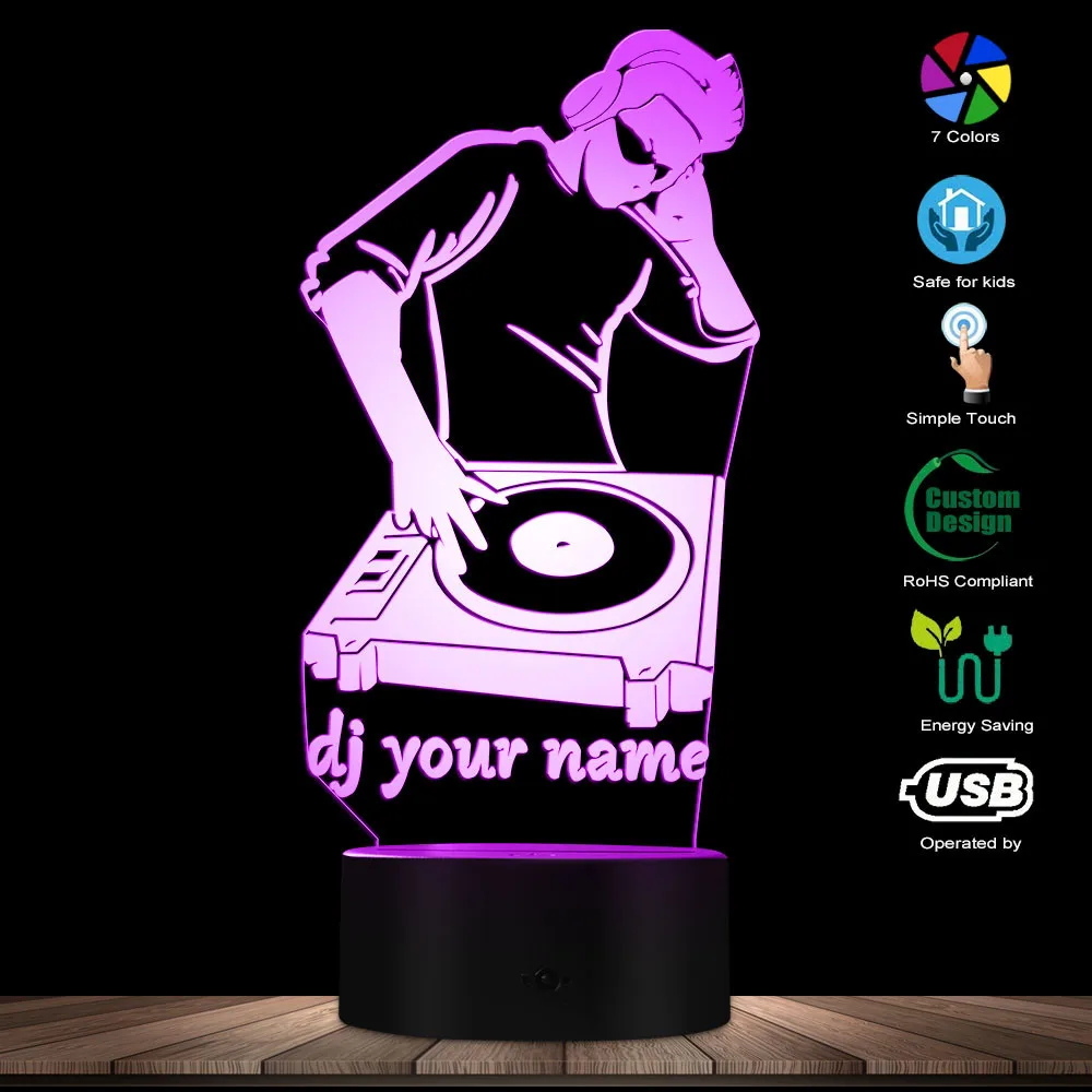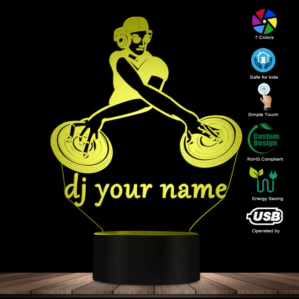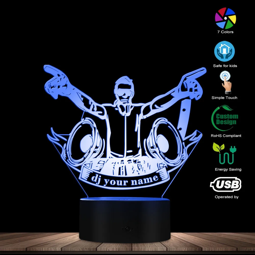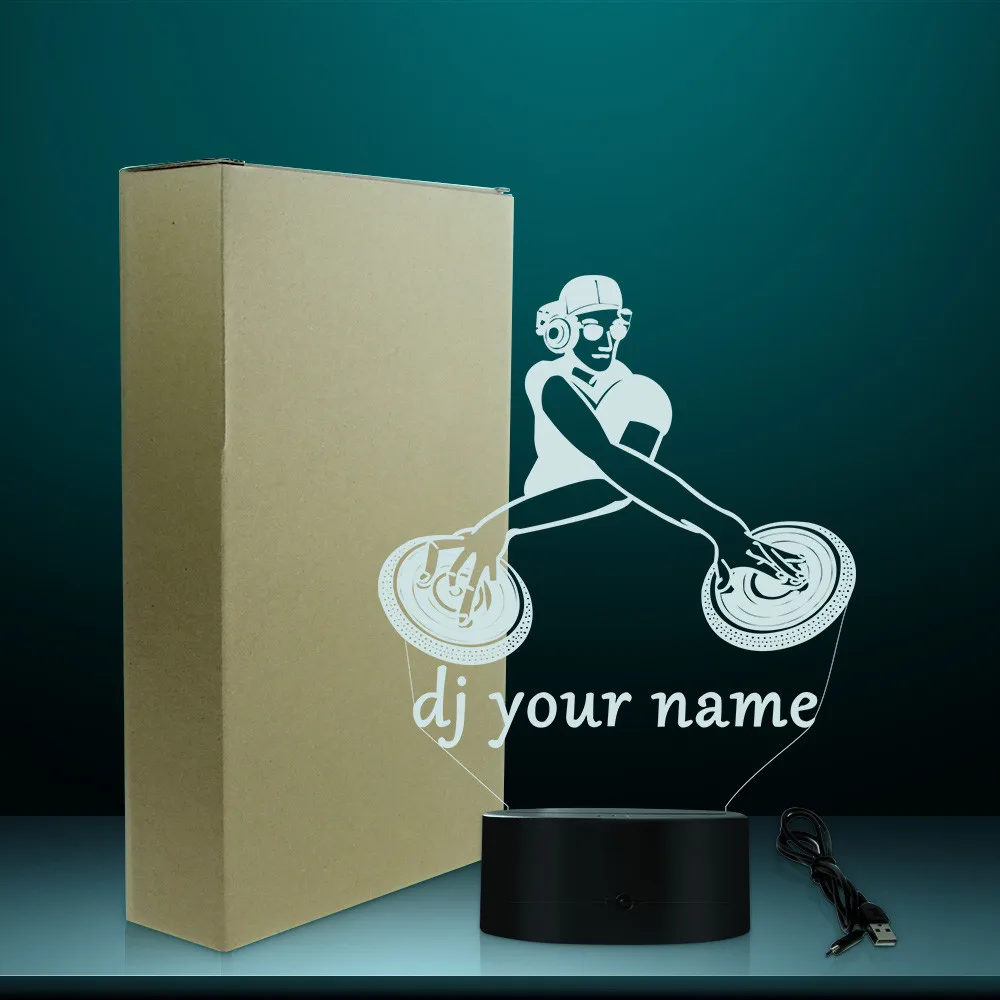 Эти изготовленные на заказ DJ название 3D светодиодный иллюзия Лампа-это сочетание искусства и технологии, которая создает волоконно-оптической 3D Иллюзия и будем врать в глаза. Издалека вы увидите дизайн, но по мере приближения вы увидите тонкий акриловый стеклянный лист, который полностью плоский. Он должен ослепить и произвести впечатление на ваших гостей, постоянно освещая комнату и вашу жизнь. Этот игривый продукт сочетает в себе мужские волокна с натуральными материалами и производится с использованием как машин, так и ручной работы. Идеально подходит для отображения в вашей спальне, гостиной, офисе, в качестве ночной лампы или любым способом, который вы хотите использовать.