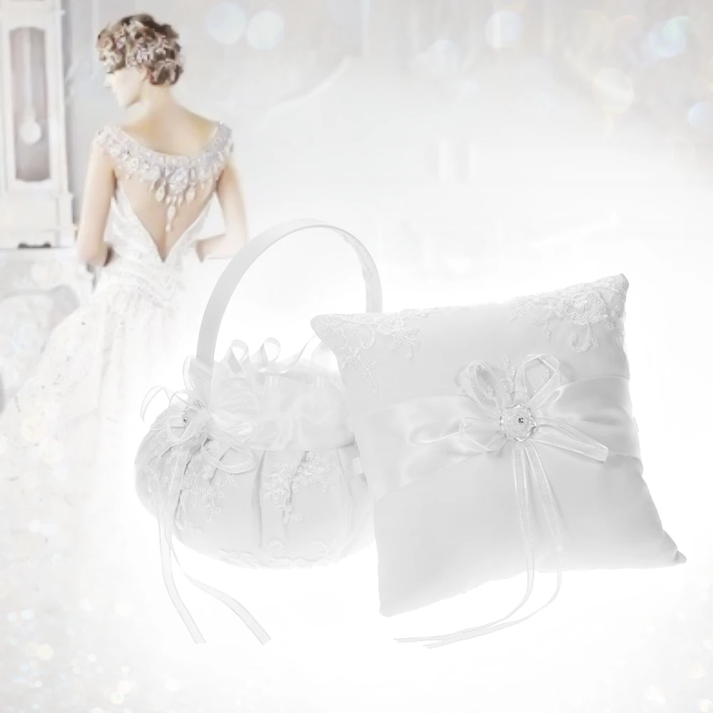 Подушка с белым кольцом цвета слоновой кости и корзина с цветами для девочек, украшенная вышивкой, элегантная и красивая. Идеальный комплект свадебных принадлежностей!