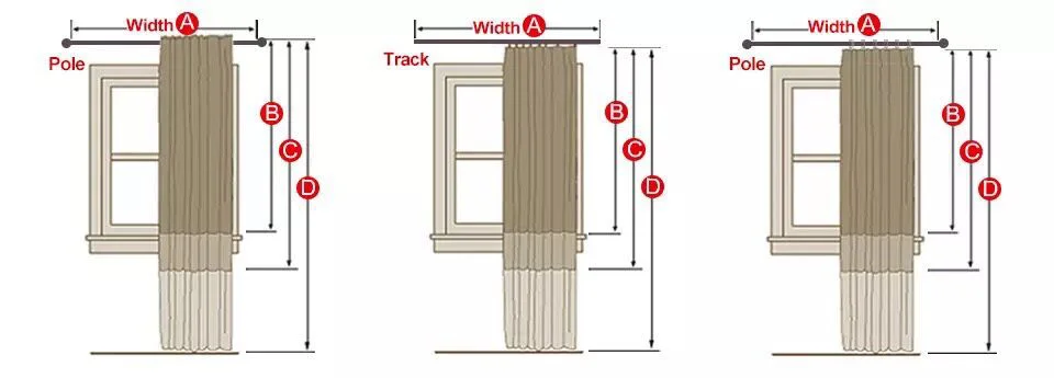 2, длина штор = B/C/D (до высоты вашего окна).