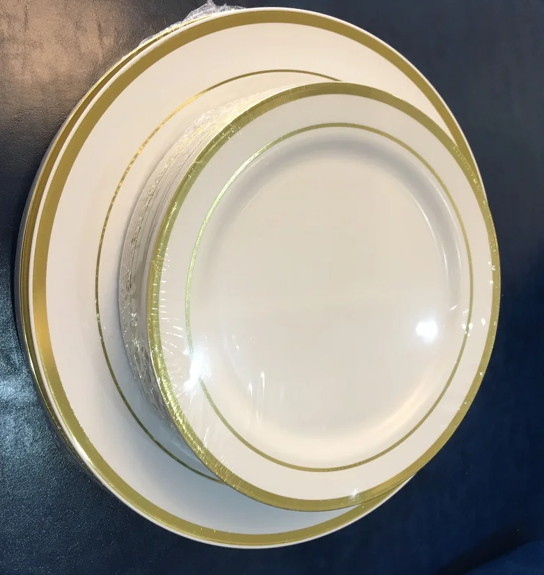 10 дюймовая одноразовая пластиковая тарелка, Экологически чистая бронзовая Золотая круглая тарелка, тарелка для фруктов, домашний лоток для хранения для свадьбы и вечеринки