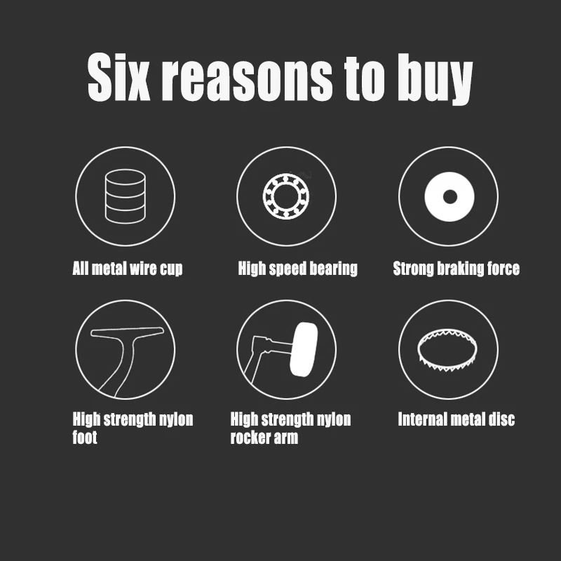 Шесть преимуществ:Все умственные проволочные чашки, высокоскоростной подшипник, сильная Тормозная сила, высокая прочность нейлоновая ножка, высокая прочность нейлоновая коромысла, internol металлический диск
