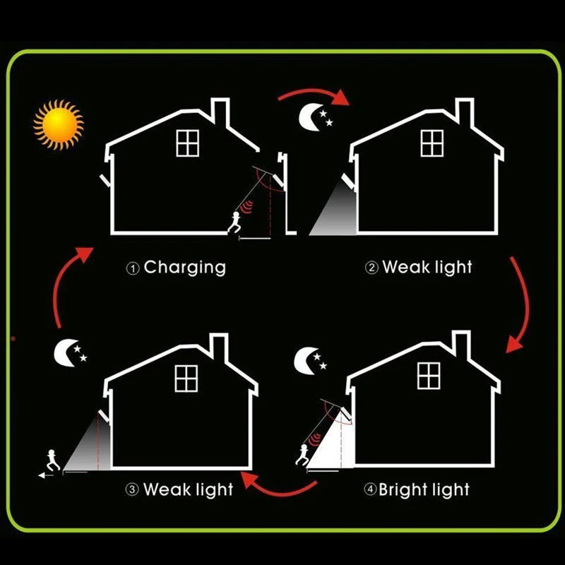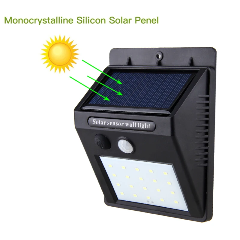 2 датчика: светильник и чувствительный датчик движения, экономят энергию. На солнечной энергии, легко для установки. Автоматическое определение дня или ночи. С водонепроницаемой функцией и водонепроницаемым переключателем. Переключатель внутри для экономии энергии во время отгрузки. Отличное полезное освещение для вашего сада, двора, прохода, крыльца, патио, подъездной дороги и т. д. Бесплатно заряжайте светильник от солнца и светильник в темноте, когда люди около 10 футов закрываются. Зеленая мощность, зеленое освещение. УФ-защита корпуса ABS, никогда не выцветает. Технические характеристики: Мощность панели солнечных элементов: 5,5 V, 0,55 W Литиевая батарея: 3,7 V-1200mAh Светодиодный: 20 штук 2835 бусинковые лампы Цветовая температура: 6000-6500K Материал: АБС-пластик Режим работы: инфракрасный датчик Время зарядки: >8 часов Время работы: полный электричества, в зависимости от 50 раз в ночь, может работать непрерывно в течение 4 дней Интеллигентая (ый) Потребляемая мощность в режиме ожидания: <0,05 мА/ч Светильник: белый светильник Размер изделия: прибл. 100*51*130 мм/3,93*2*5,11'' Вес нетто: прибл. 170 г Примечание: Возможны отклонения в 1-3 мм вследствие измерений вручную. Из-за различных дисплеев и различного светильник, изображение может не отражать фактический цвет товара. Спасибо за понимание.
