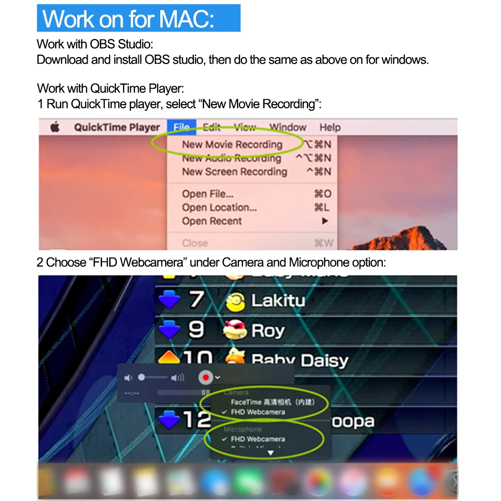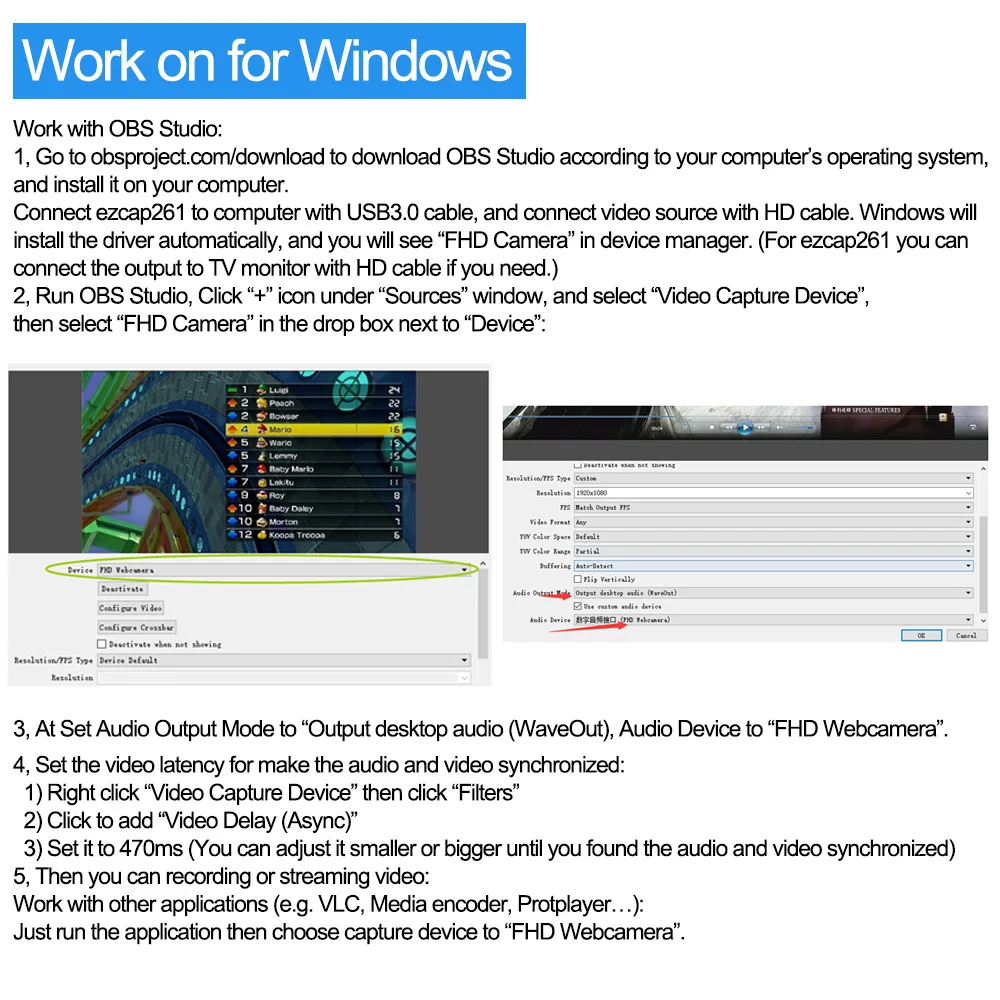 Просто подключите видеозапись Full HD 1080 60 к вашему ПК (для системы Windows / Mac / Linux), не нужно устанавливать драйвер, И вы можете использовать любые вечерние программы 3rd для захвата или потоковой передачи HD игры или другого источника видео HD.