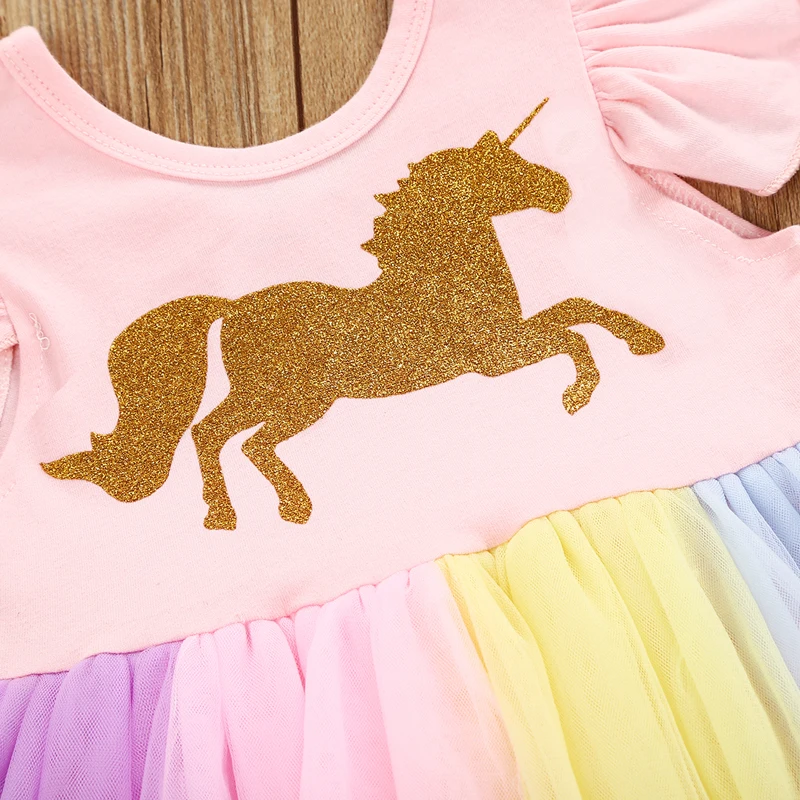 Новое кружевное платье-пачка с единорогом и короткими рукавами для новорожденных девочек, юбка, комбинезон, наряды!