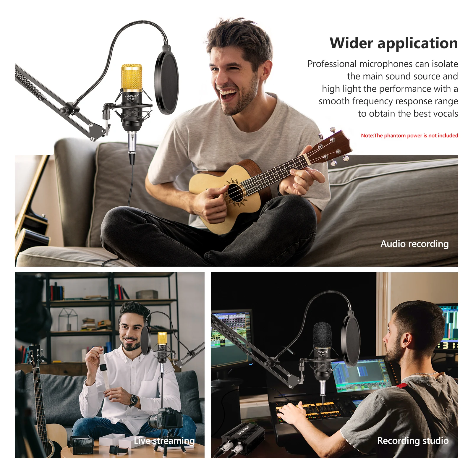 2. Если ваше устройство не может обеспечить достаточную мощность (при использовании с усилителем или миксером и т. д.), запись звука может быть низкой, И, пожалуйста, используйте дополнительный адаптер питания 48 В phantom для подключения.