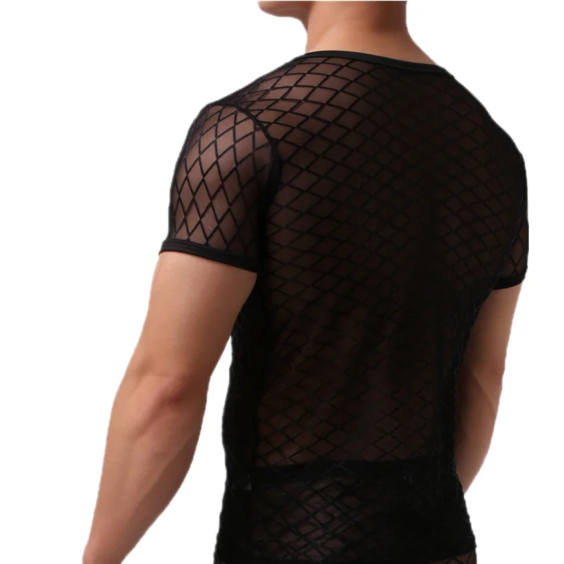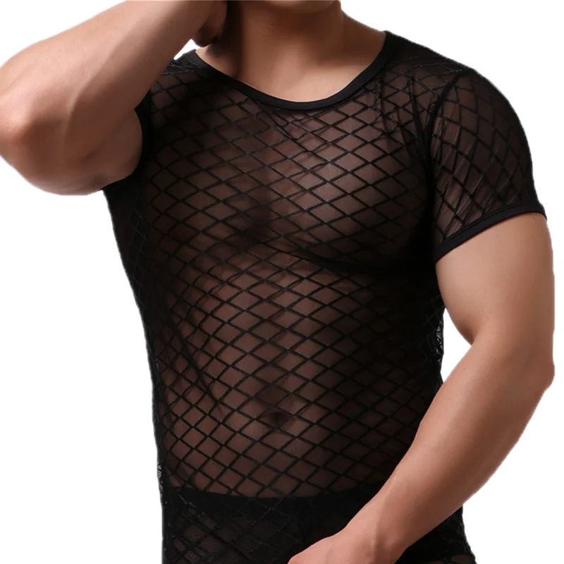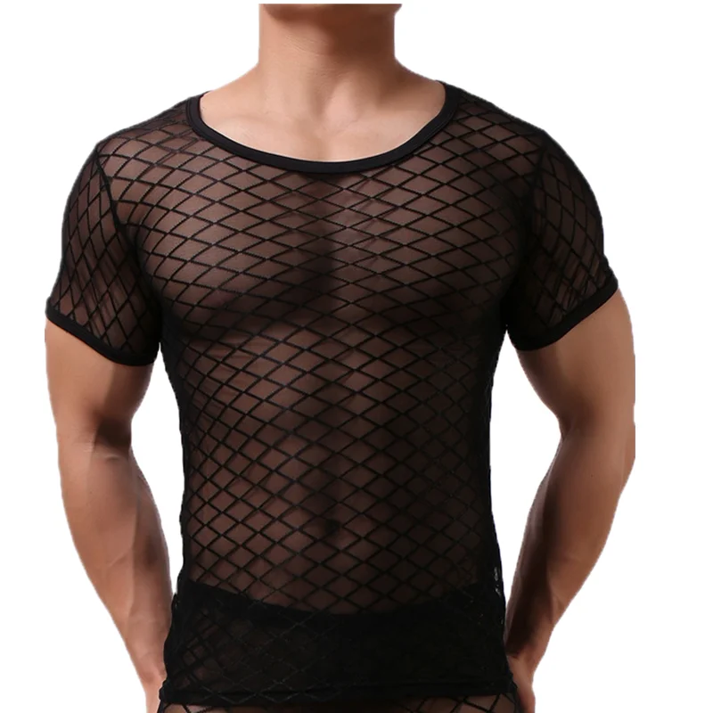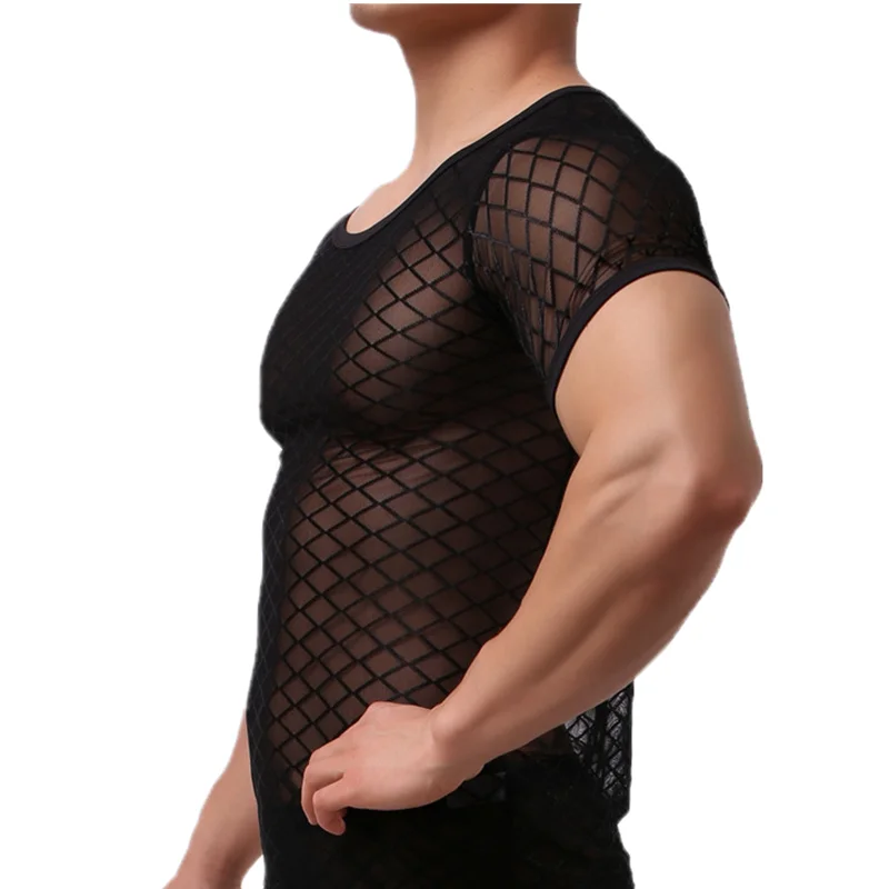 Сексуальные мужские топы, нижнее белье с коротким рукавом, Сетчатое Прозрачное нижнее белье, одежда для сна, сексуальные мужские футболки, тонкие топы для фитнеса
