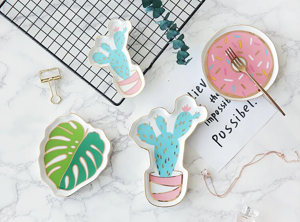 2 шт./компл. Розовый фламинго тарелка для завтрака Милая керамическая тарелка фрукты закуски тарелка ювелирные изделия серьги лоток для хранения домашнего декора подарки 1225