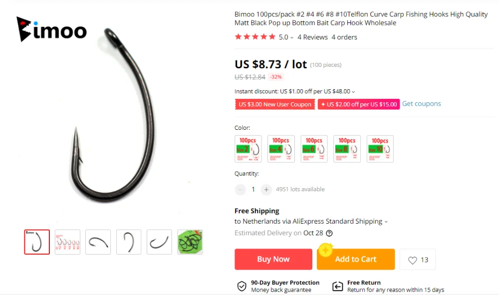 Bimoo 20 шт./упак. #2 #4 #6 #8 игла покрытая острый кривой Карп рыболовные крючки Высокое качество матовый черный Pop up крючок для ловли карпа