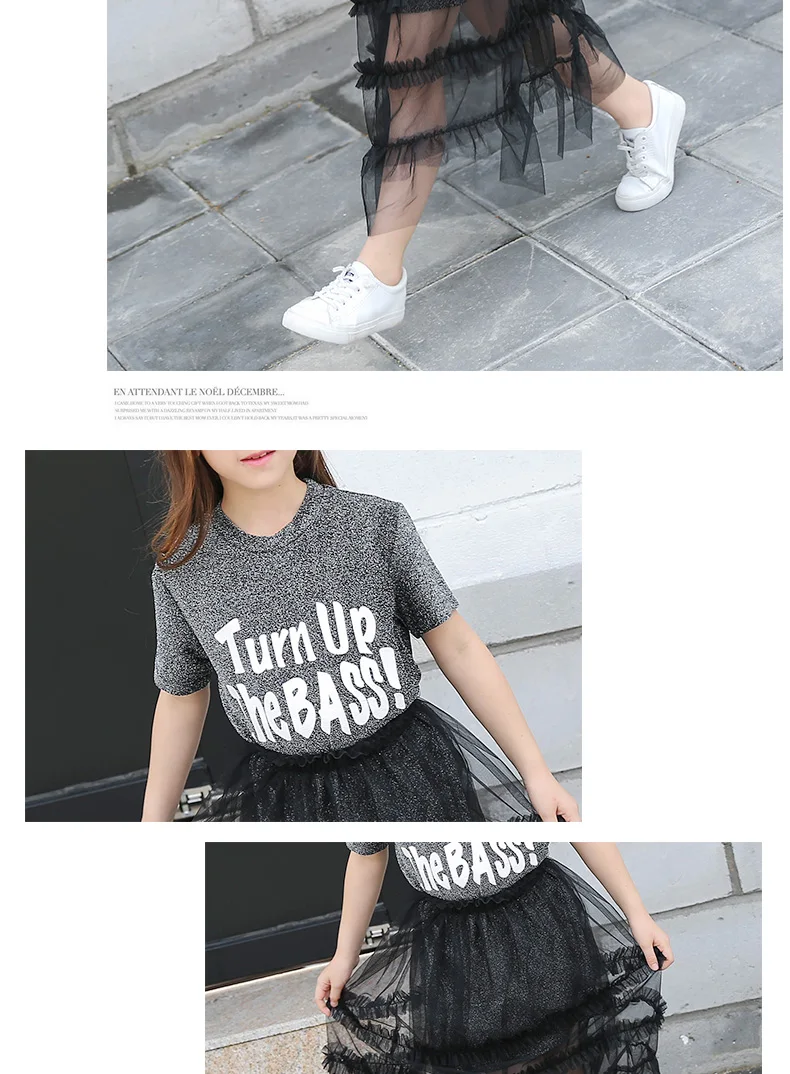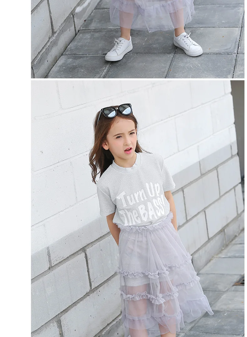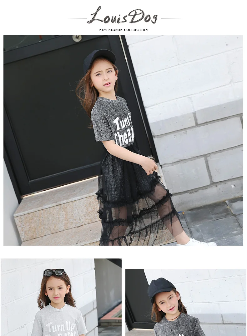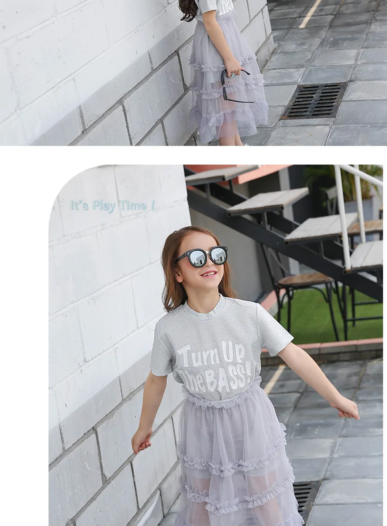 * Информация о продукте Ткань: хлопок + сетка Комплект из 2 предметов с платьем для девочек, очень ценный. Шикарная длинная футболка с короткими рукавами + сетчатая юбка FashionTeenage платье для девочек 120 см, 130 см, 140 см, 150 см, 160 см, 165 см,
