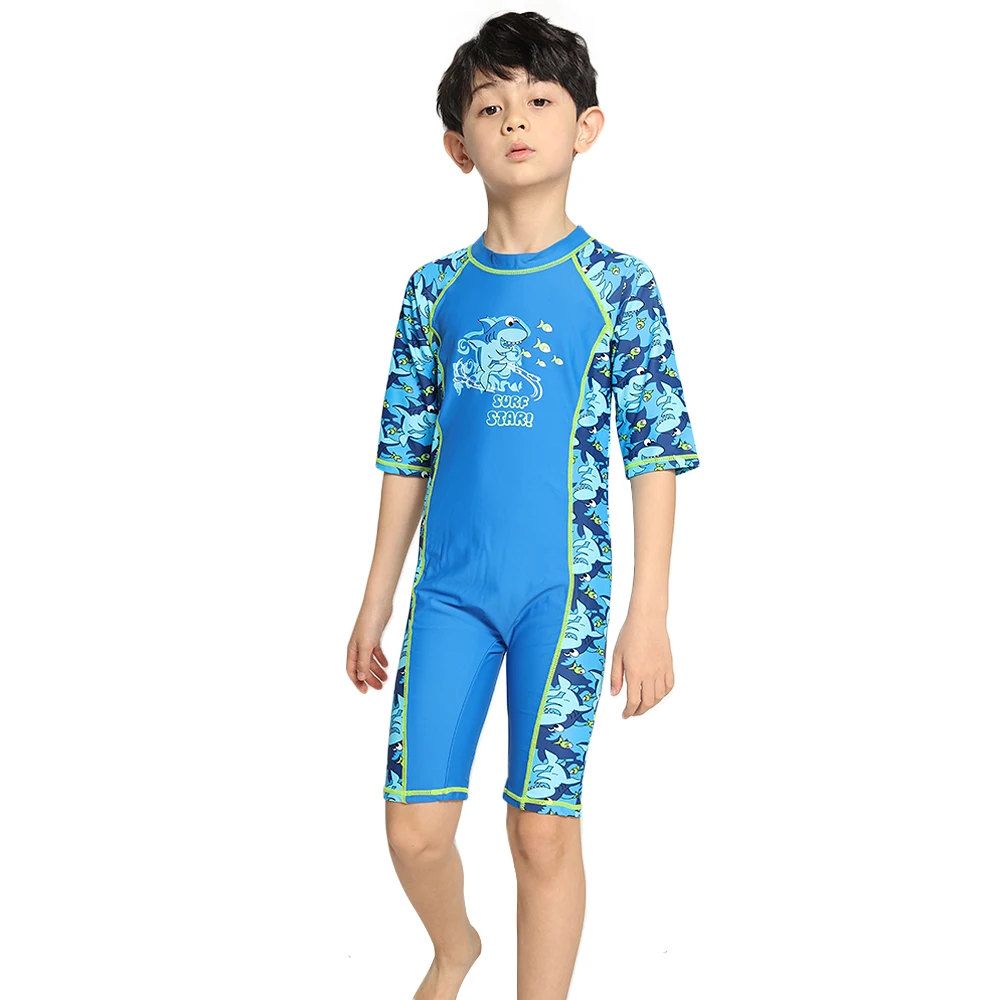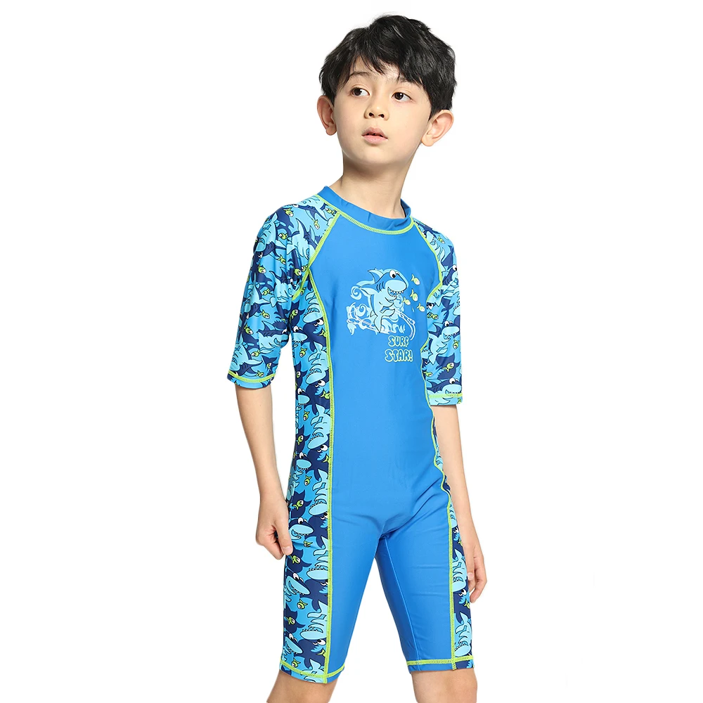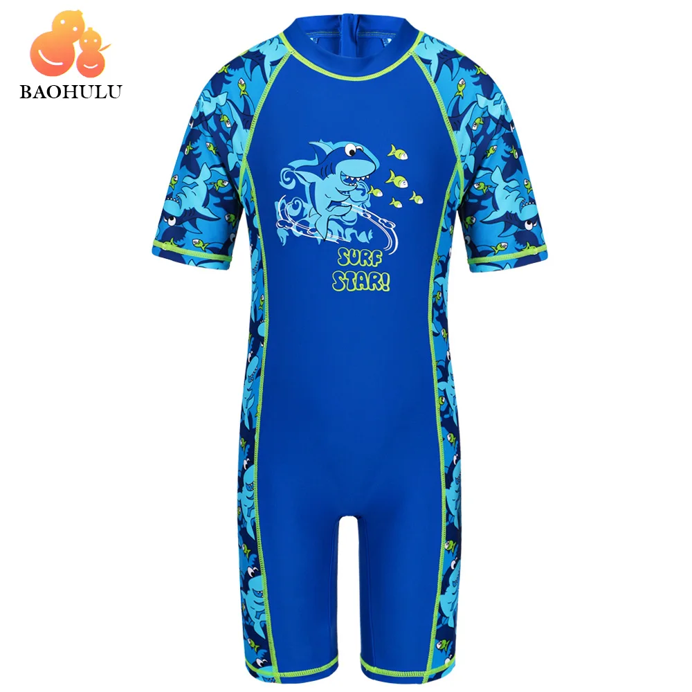 BAOHULU/2021 г., милая голубая акула для маленьких мальчиков, купальный костюм с рыбами г., цельнокроеная летняя одежда с коротким рукавом для серфинга и плавания