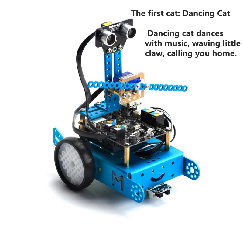 MBot Robot Add-on Pack-Servo PackОсобенности:. Алюминиевая экструзия, анодированная поверхность. Одна часть делает самый популярный mbot двигаться с ножками. Самый приятный и забавный инструмент для обучения программированию. Для детей и взрослых. Продвижение творчестваЧто такое mBot servo pack?Обучающий servo упаковка 3 в 1 пакет на основе обучающий. Вы можете создать «Танцующий Кит», «встряхивание головы» и «светоизлучающий Кит» с компонентами и mBot в упаковке.Набор сервопривода mBot делает mBot более прочным и приятным, что приносит пользу творческому мышлению детей.Первая кошка: Танцующая кошкаТанцующая кошка танцует с музыкой,Развевающаяся маленькая коготь, зовет вас домой.Вторая кошка: качающаяся головой кошкаВыгляжу вокруг с большими глазами.Милый, живой и веселый.Третий Кот: светильникМилая кошка осветляет вашу жизнь.Светильник проникает в темноту,Он/ярче на солнце.Примечание:Это дополнительный пакет/расширительный пакет для mBot, mBot на рисунке не входит в комплект, пожалуйста, свяжитесь с нами для уточнения ценыСписок деталей:1*9g сервопривод1 * RGB-LED V1.11 * RJ25 адаптер1 * гаечный ключ M5 + M72 * 6P6C кабель-20 см-черный2 * пластиковое кольцо2 * кронштейн 3*32 * пластина I1-синий4 * срезаемая связь (синий)4 * Латунные шпильки M4 * 2510 * гайка M420 * винтов M4 * 8