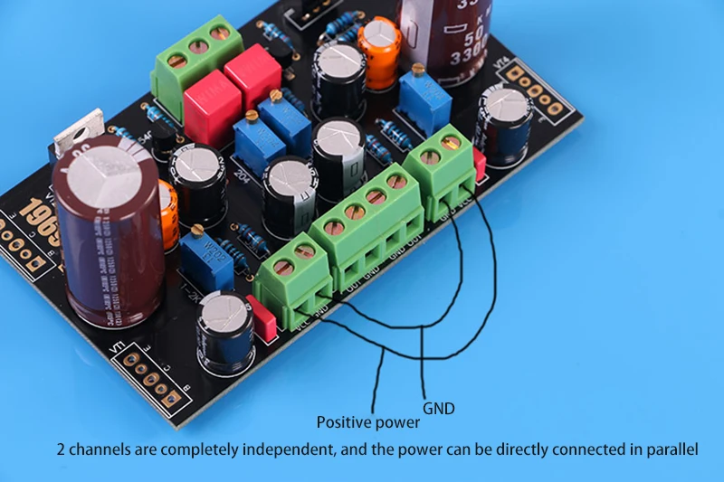 1: используется печатная плата военного регулирования Shen Jin 2: симметричный дизайн, независимые 2 канала для легкой отладки. 3: выходной конденсатор использует 3300 мкФ, который обладает обильной энергией