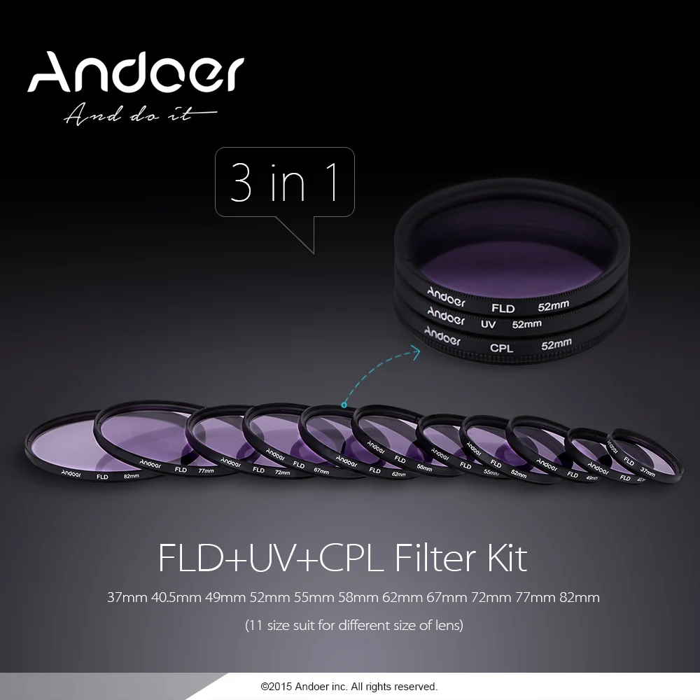 Набор круговых фильтров Andoer 67 мм UV + CPL + FLD круговой поляризатор фильтр флуоресцентный фильтр с сумкой для Nikon Canon Pentax Sony DSLR камеры