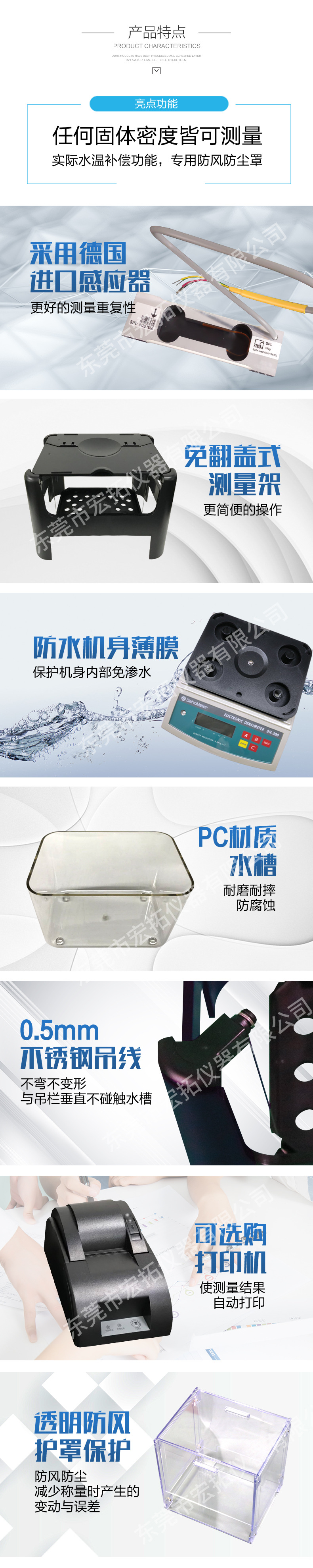 Твердые шаги измерения: Вес в воздухе Используйте пинцет, чтобы поместить образец в воду Образец в весе воды Нажмите Enter, чтобы автоматически отобразить значение плотности Шаги измерения частиц: Положите гранулы в чашку воды и поместите их на измерительный стол до нуля Налейте частицы в чашку И взвешивайте их в воздухе Положите гранулы в воду и положите чашку обратно на измерительный стол Нажмите Ente, чтобы автоматически отобразить значение плотности Результаты показывают, что Характеристики продукта: Источник питания Вес Пинцет Термометр Раковина Испытание плавучего тела (специальный аксессуар) Гранулированный порошок (специальный аксессуар)
