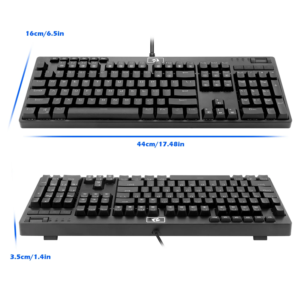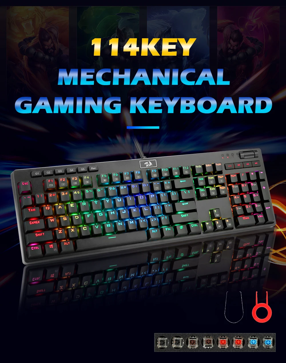 Механическая игровая клавиатура Redragon K579 RGB USB, синий переключатель со светодиодной подсветкой, 104 ключа, Проводная компьютерная игра для ПК