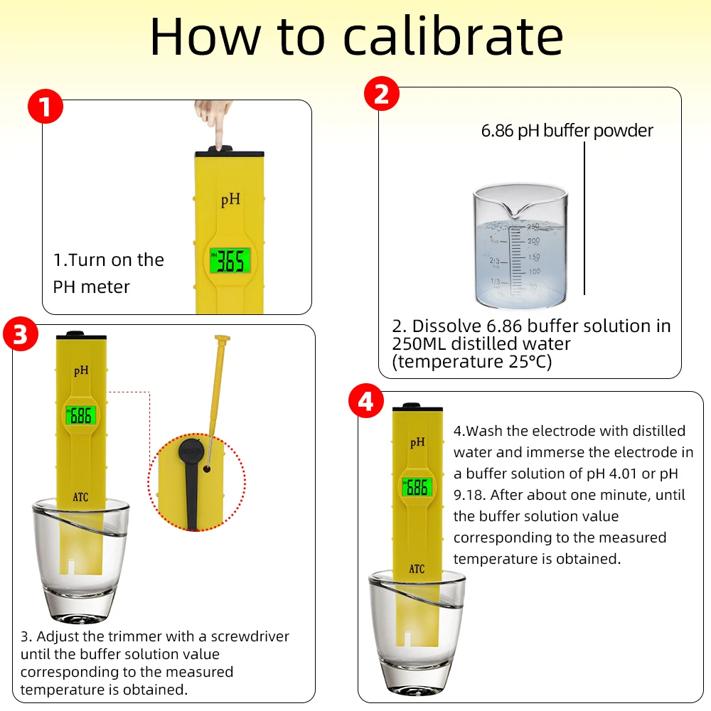 Погрузите электрод в pH 6,86 (при температуре 25 градусов по Цельсию) Стандартный буферный раствор фосфата и аккуратно встряхните электрод.