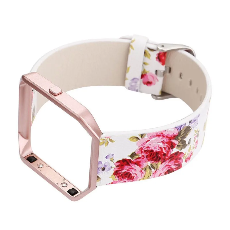 Кожаный ремешок для часов DAHASE с цветочным узором, 23 мм, сменный ремешок для часов с цветком для Fitbit Blaze Band w, цветная металлическая рамка