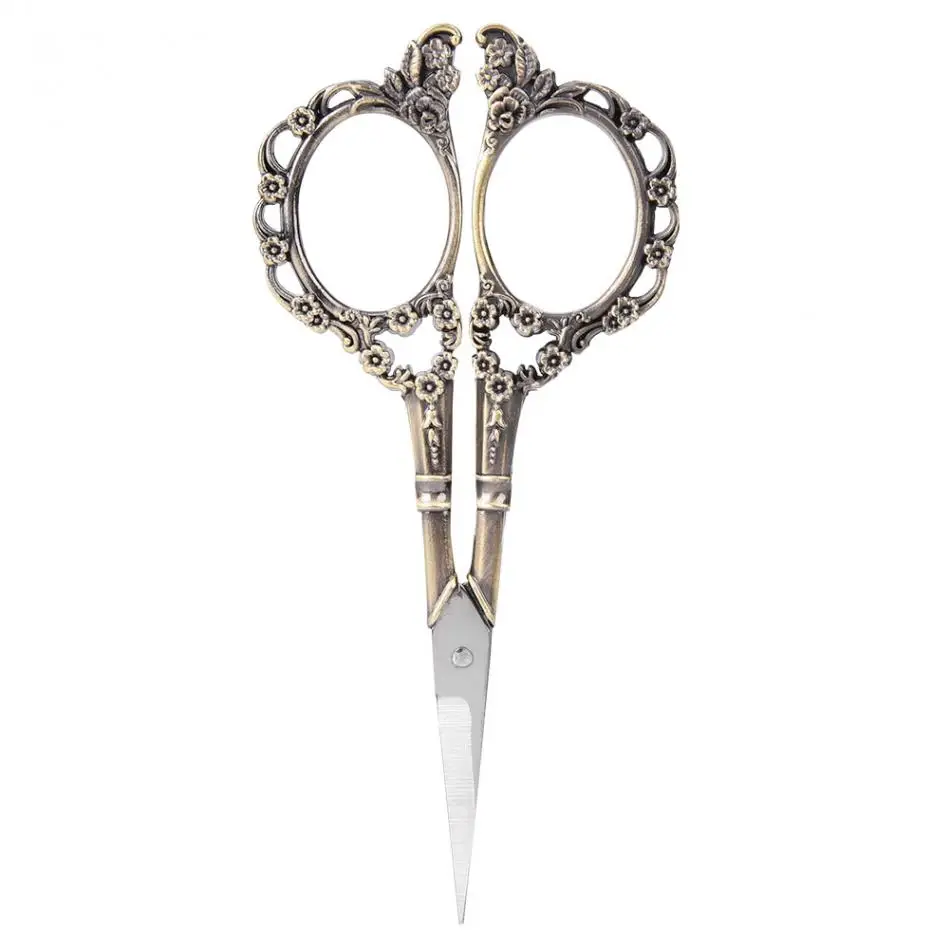Ножницы хорошо изготовлены из нержавеющей стали, закаленная обработка для прочной резкости и стойкости к истиранию. Высококачественная ручка из цинкового сплава удобна в хранении и проста в использовании. Дизайн с красивым цветочным узором на ручке, тонкая работа. Ножницы очень острые, это не только инструмент, но и отличное украшение. Его можно широко использовать дляШитье, скрапбукинг, изготовление и т. Д.